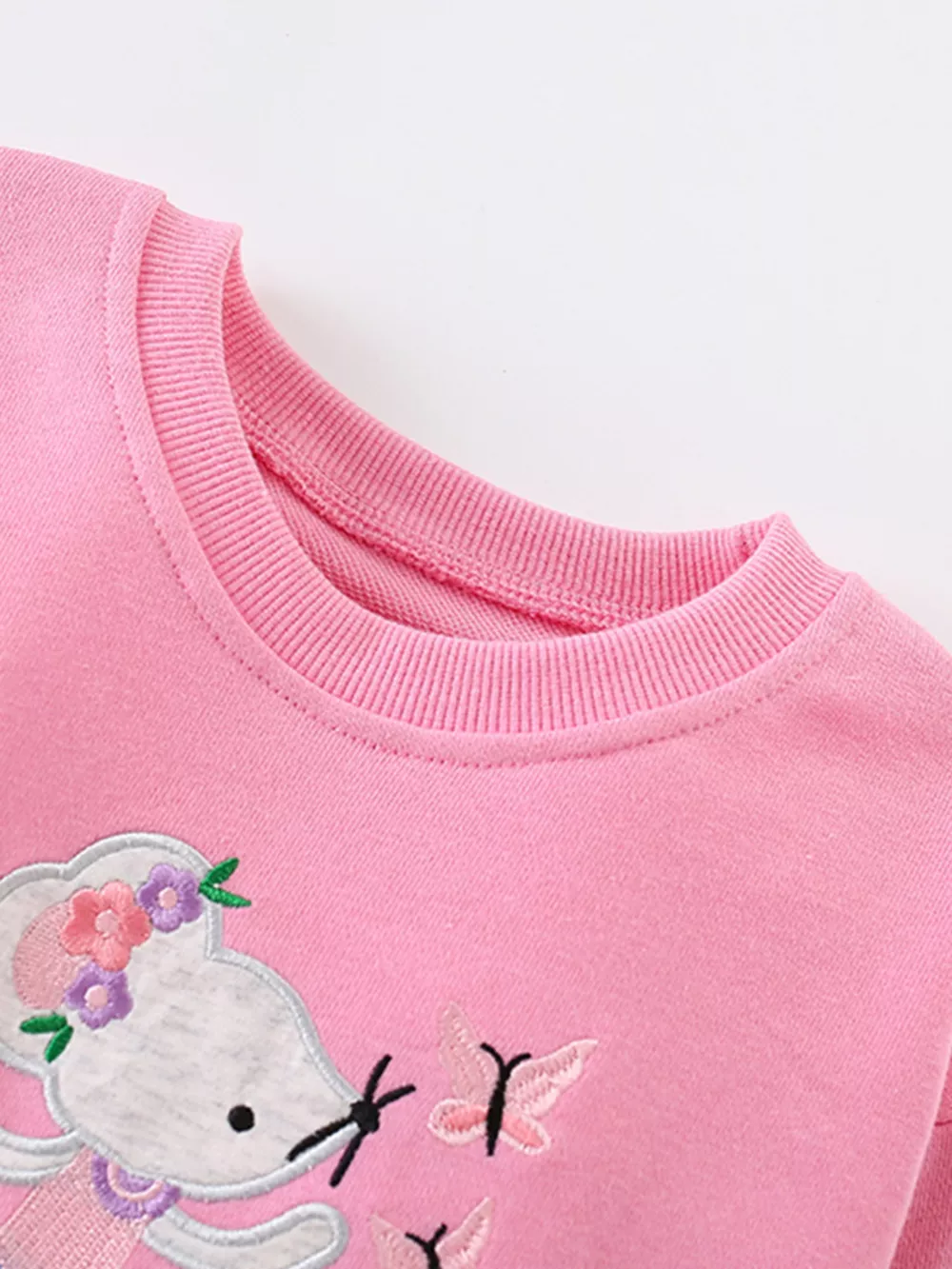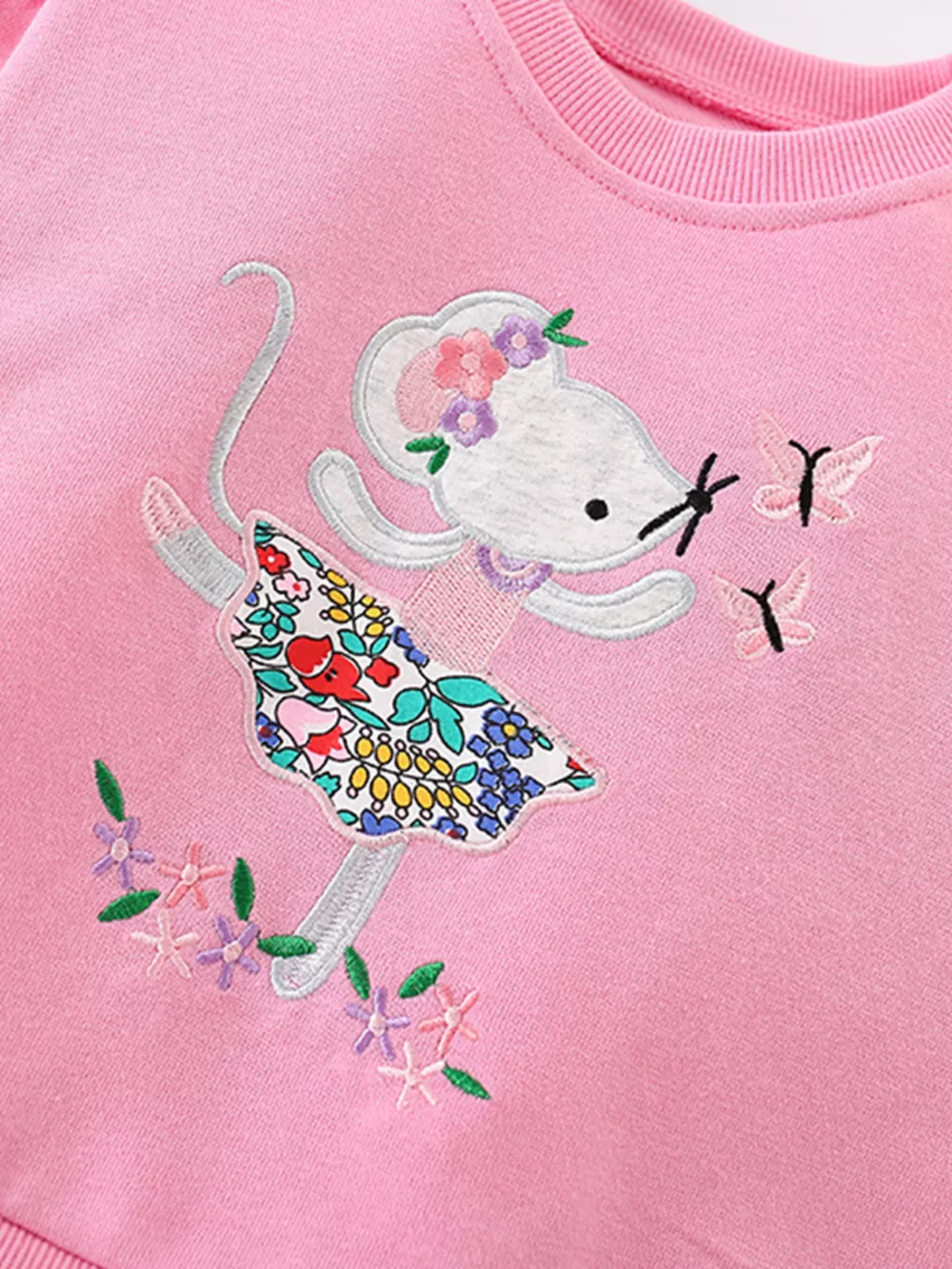 Children's Cute Cartoon Embroidered Tulle Hem Sweatshirt