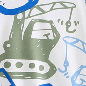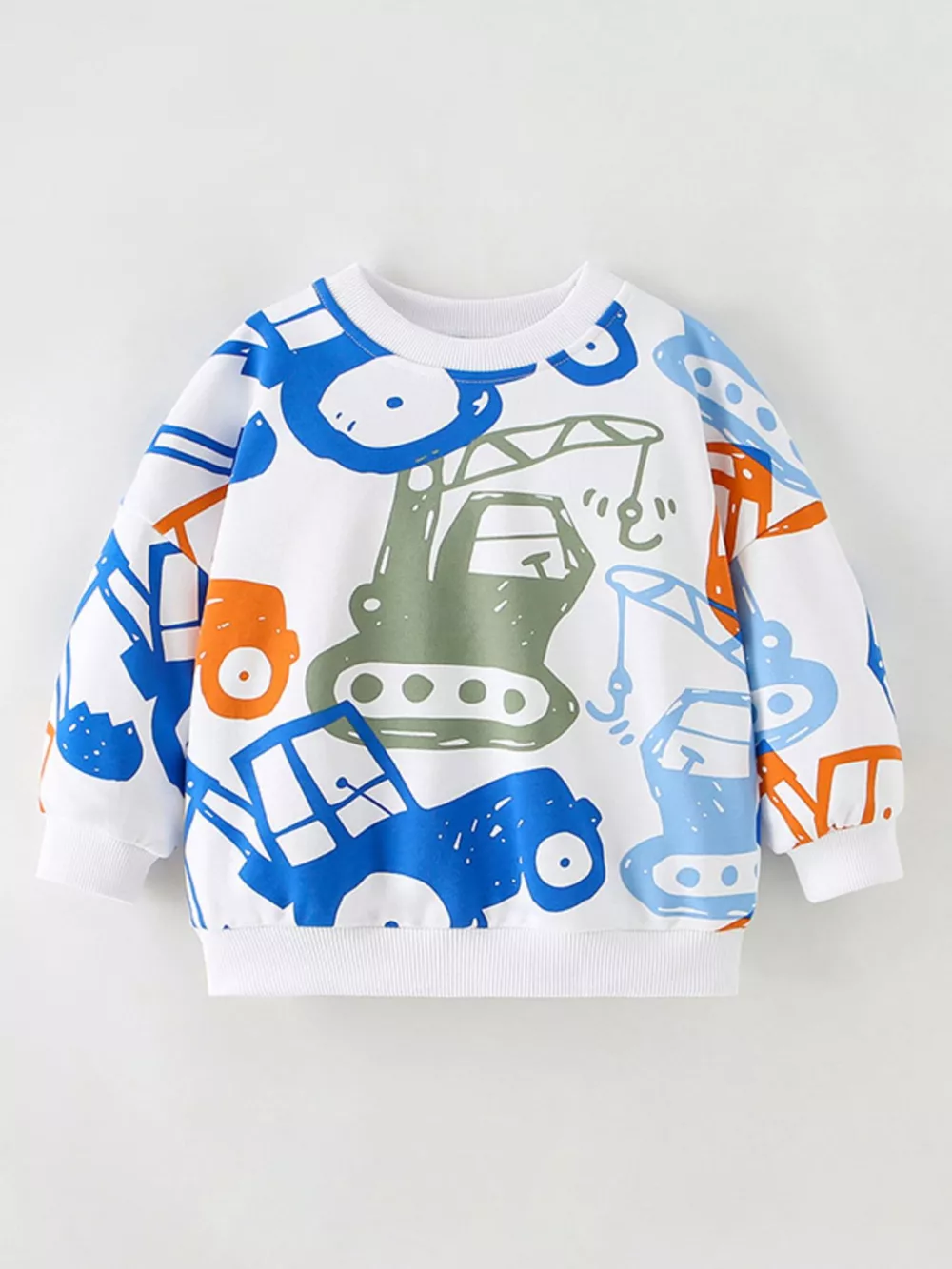 Children's Cartoon Vehicle Print Crew Neck Sweatshirt