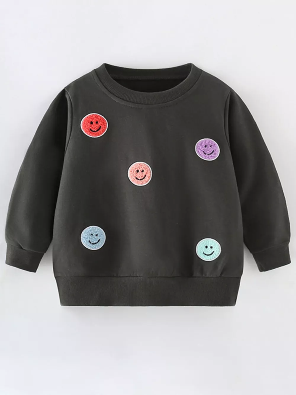 Children's Smiley Face Patches Crewneck Sweatshirt
