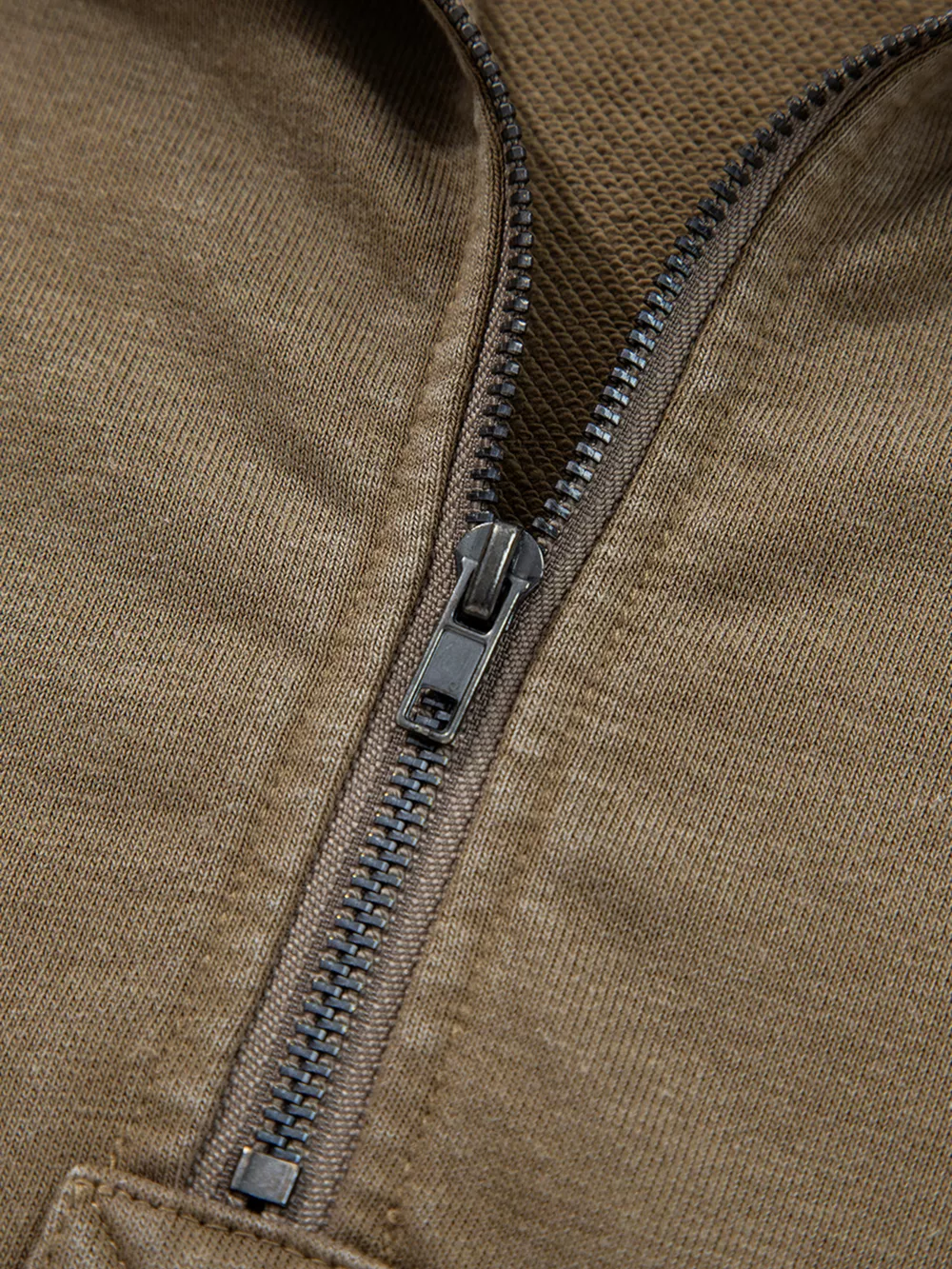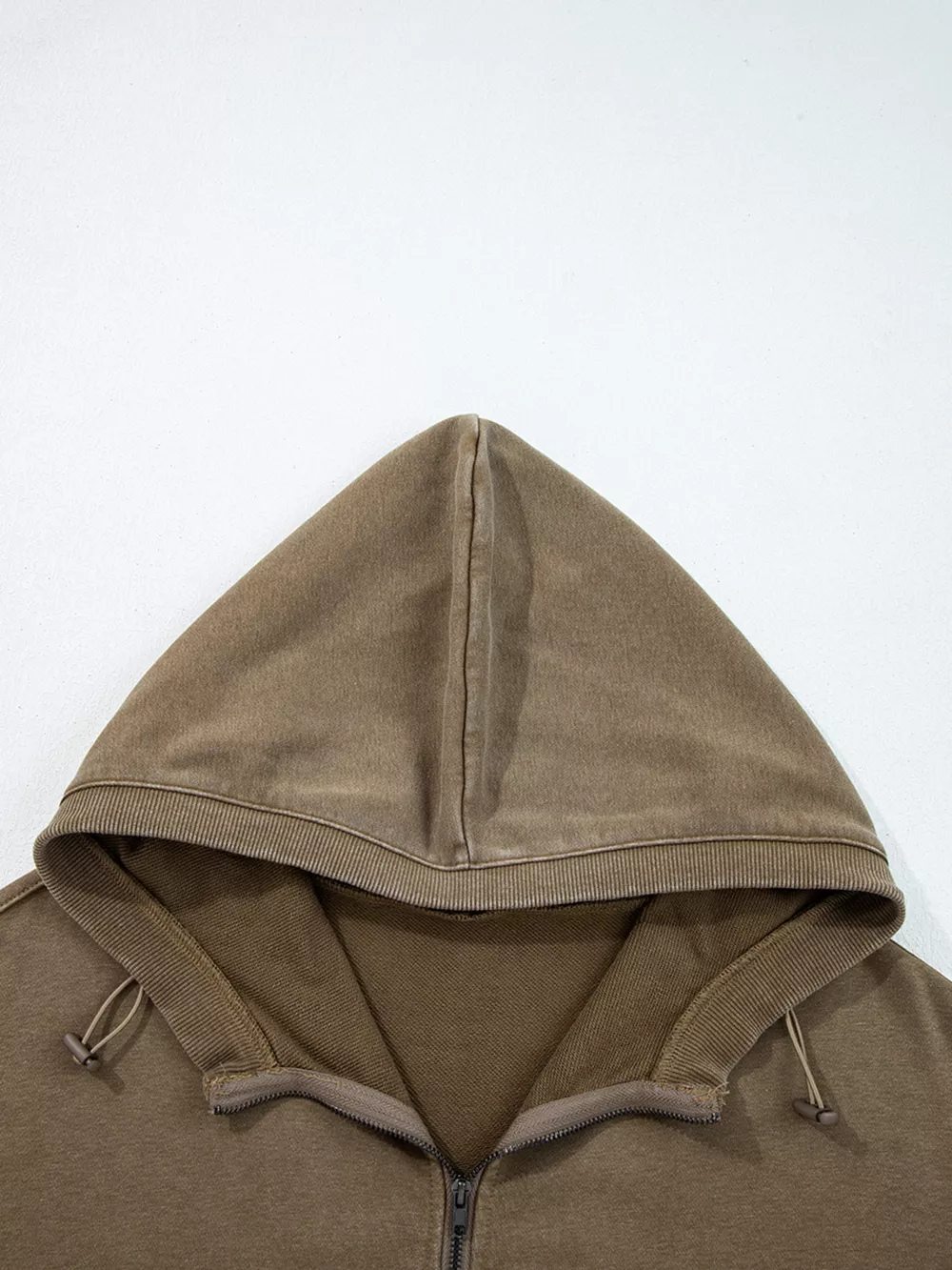 Half Zip Kangaroo Pocket Mineral Wash Baggy Hoodie