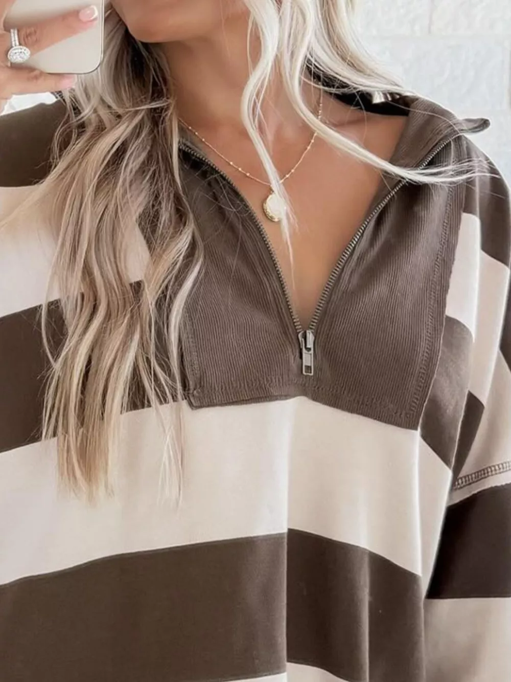 Striped Quarter-Zip Long Sleeve Sweatshirt
