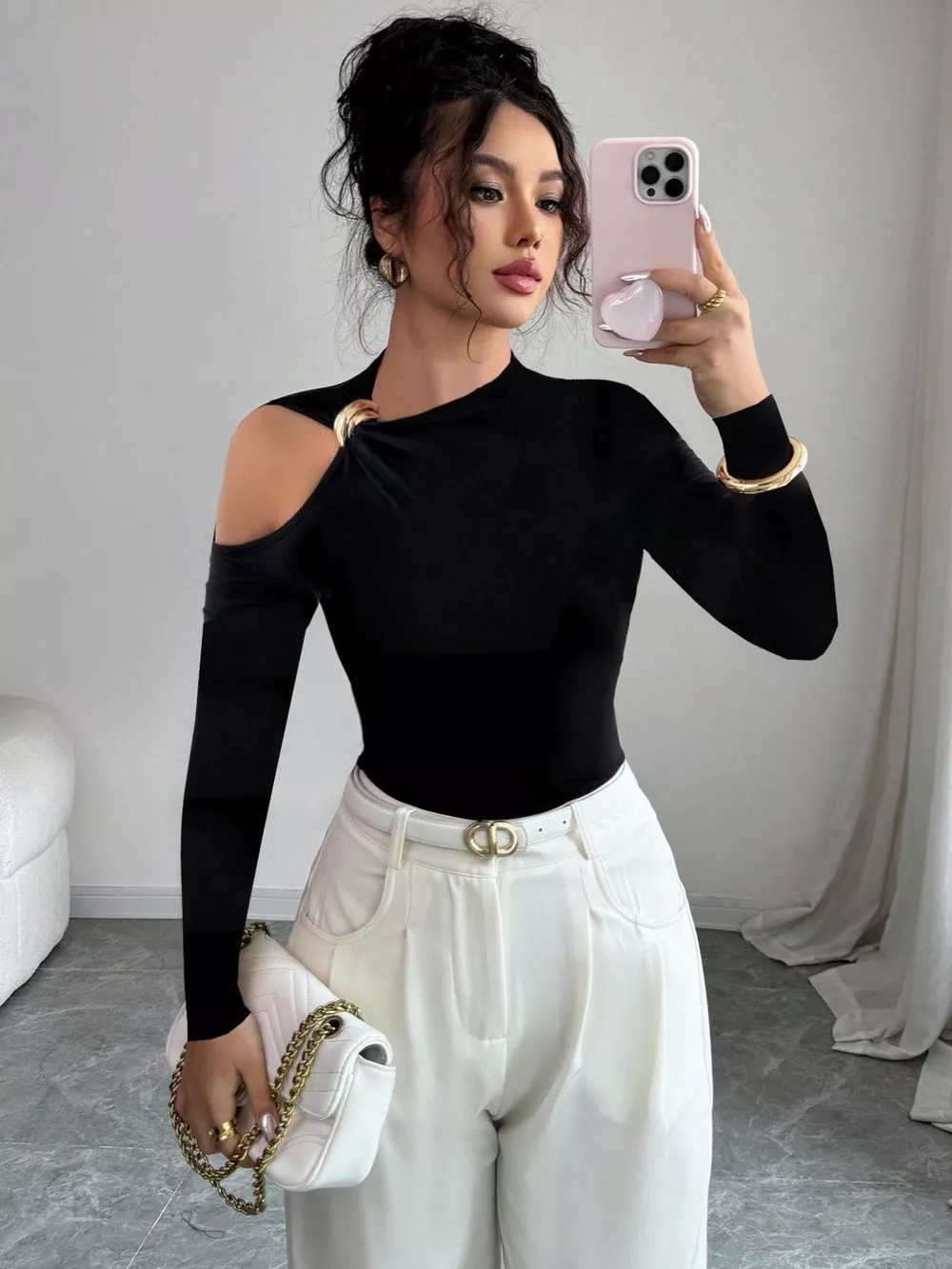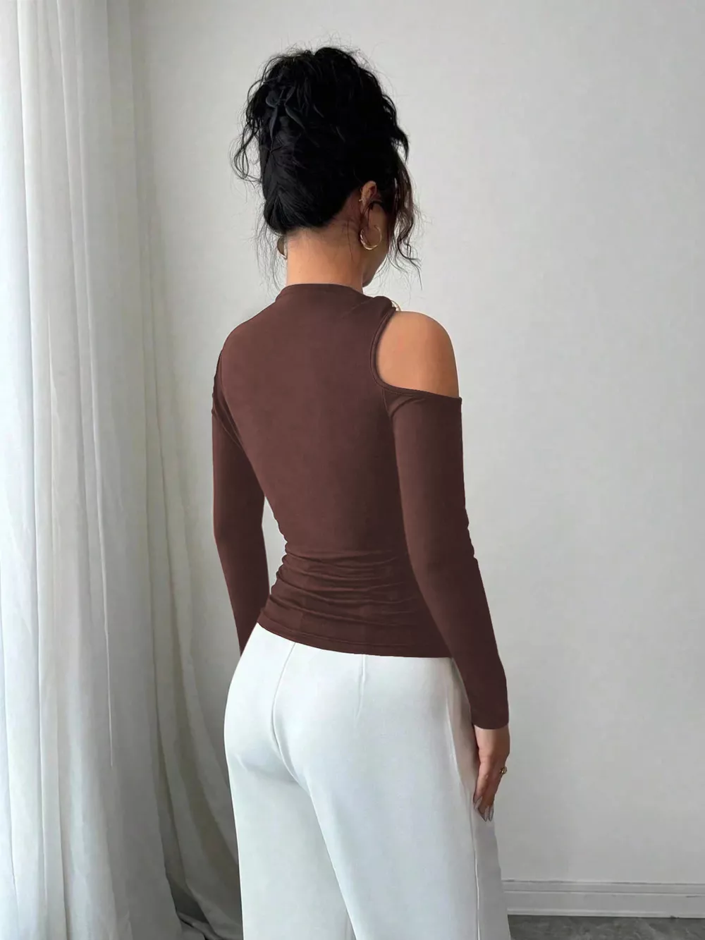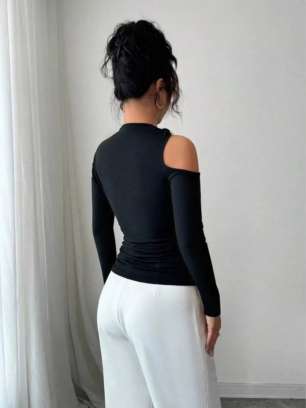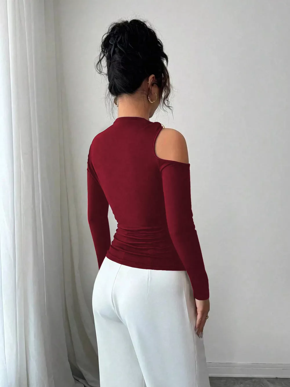 Cutout One-Shoulder Long Sleeve T-Shirt