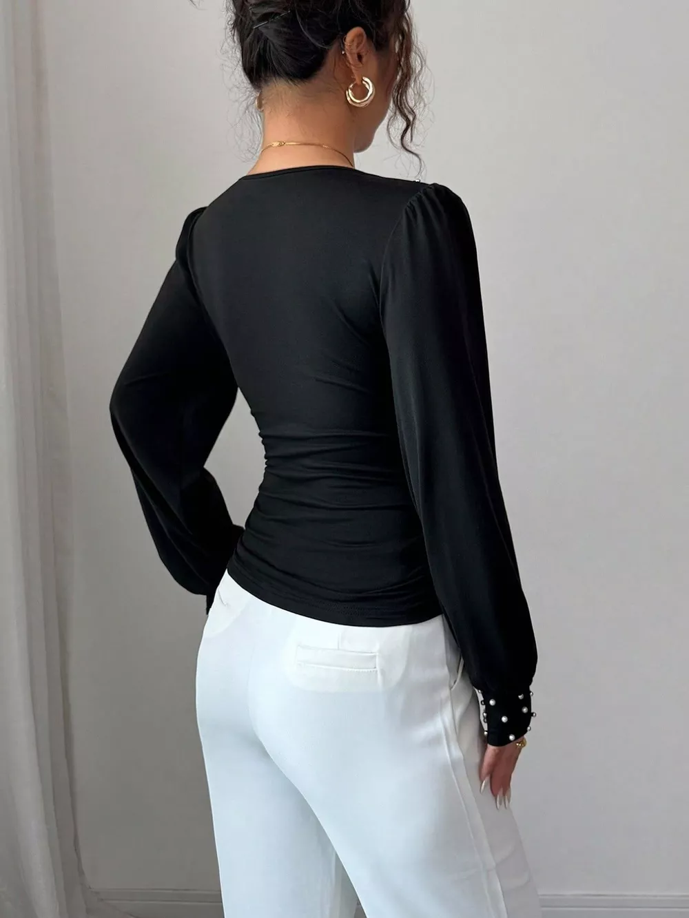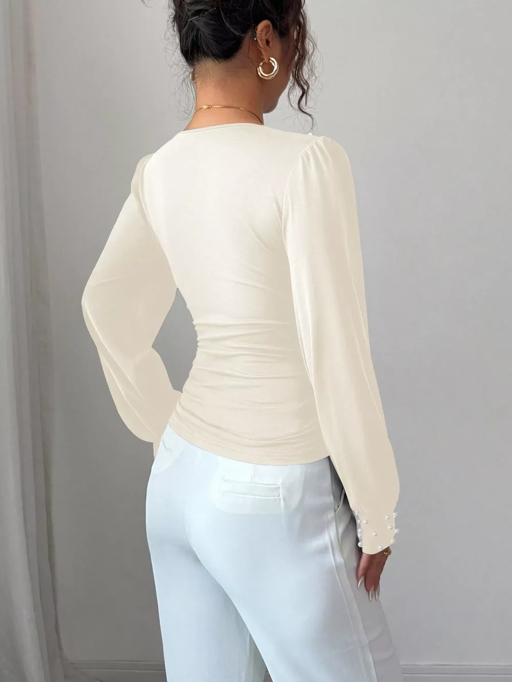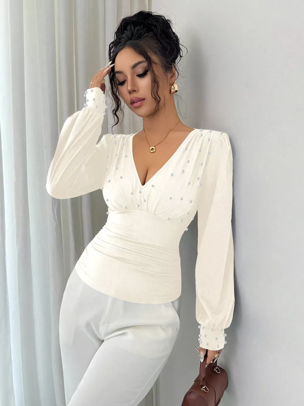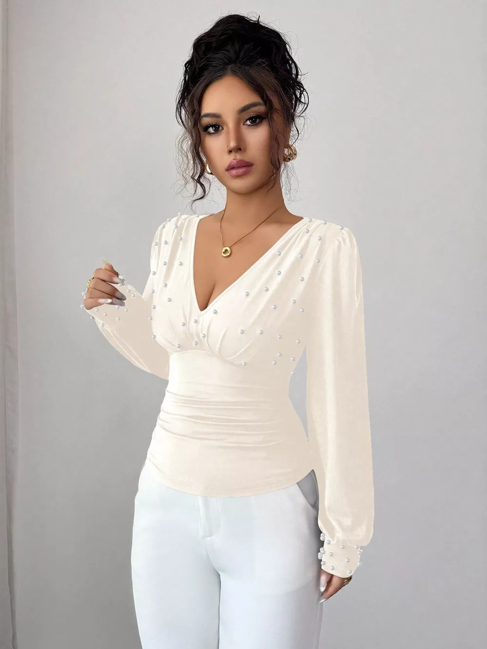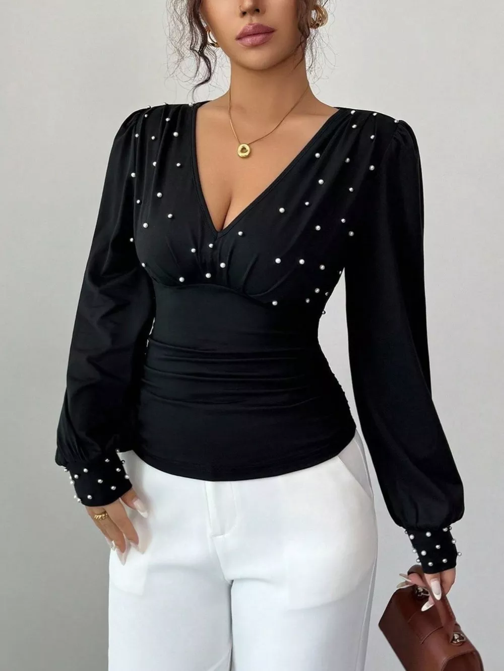 Pearl Embellished V-Neck Blouse