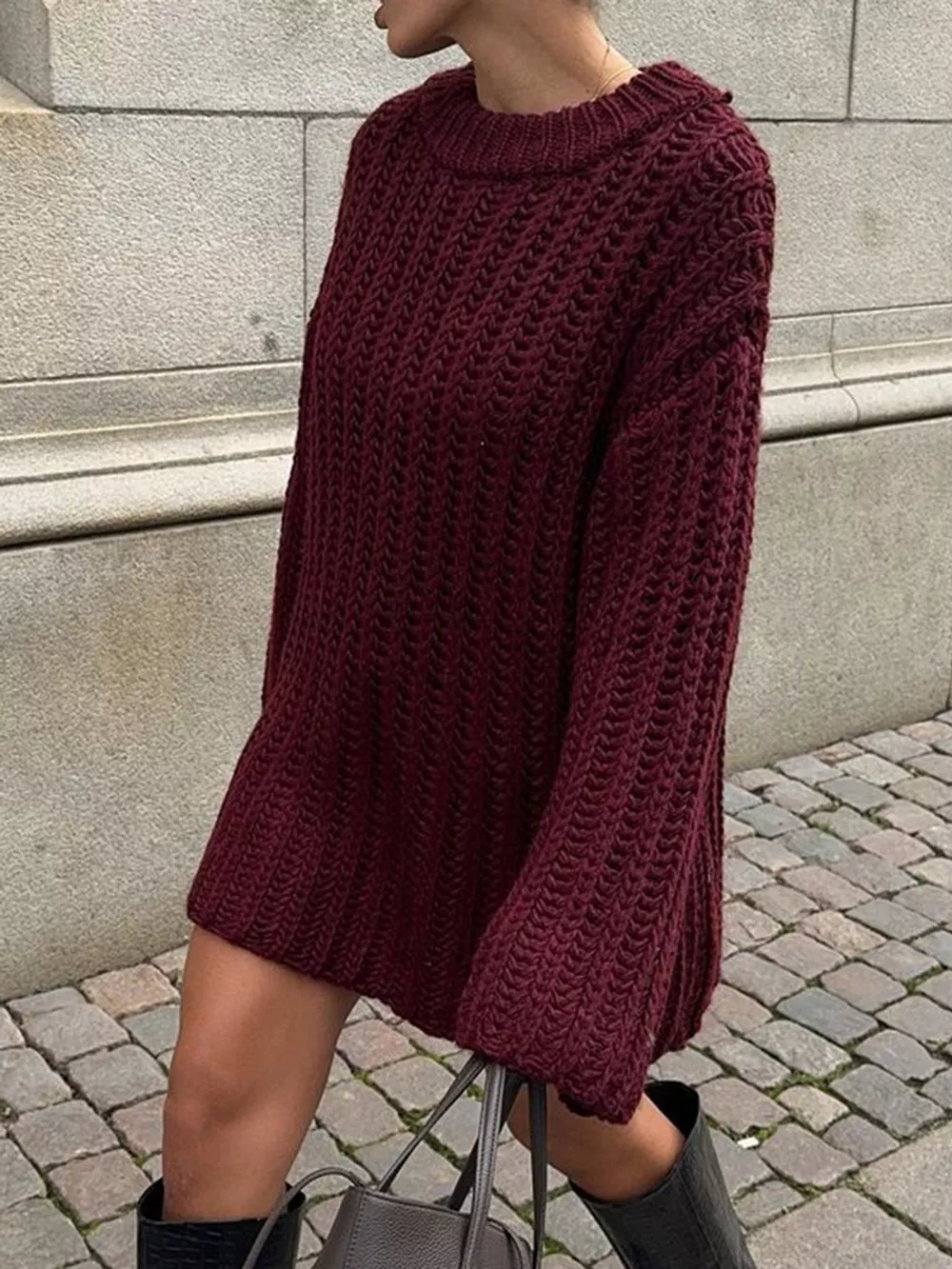 Oversized Chunky Knit Round Neck Sweater