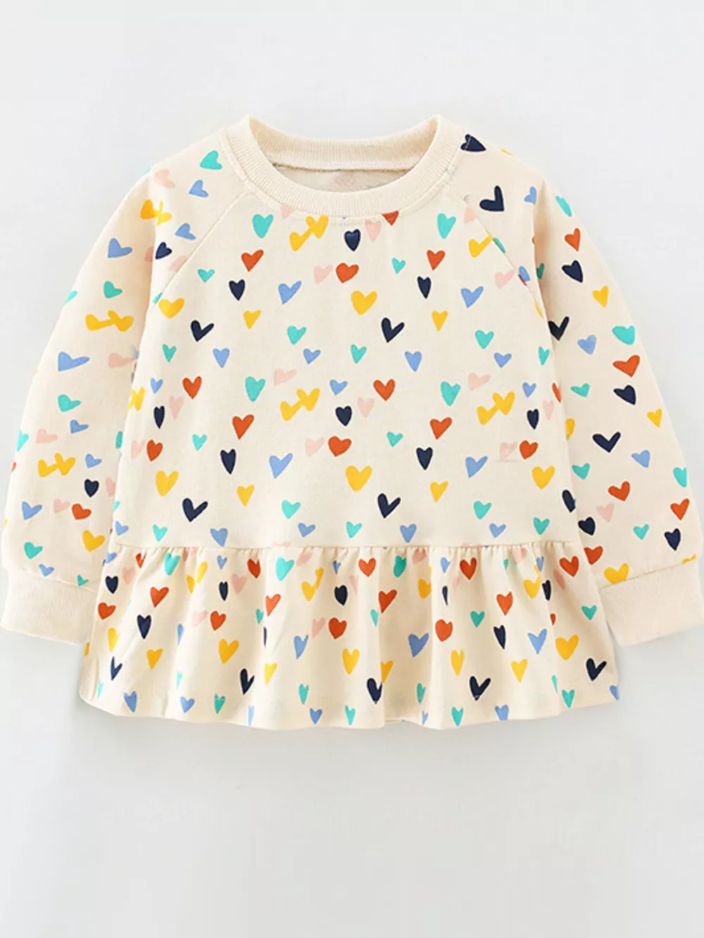 Children's Heart Print Ruffle Hem Long Sleeve Top