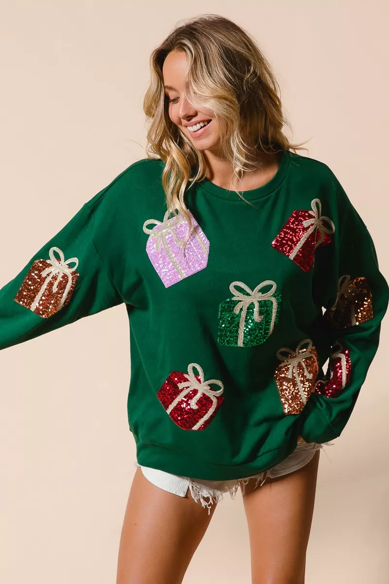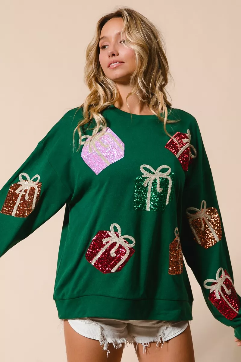 BiBi Sequin Christmas Gift Box Embroideries Pullover