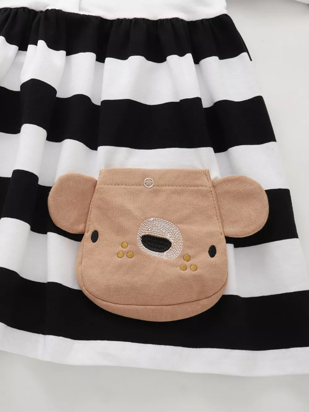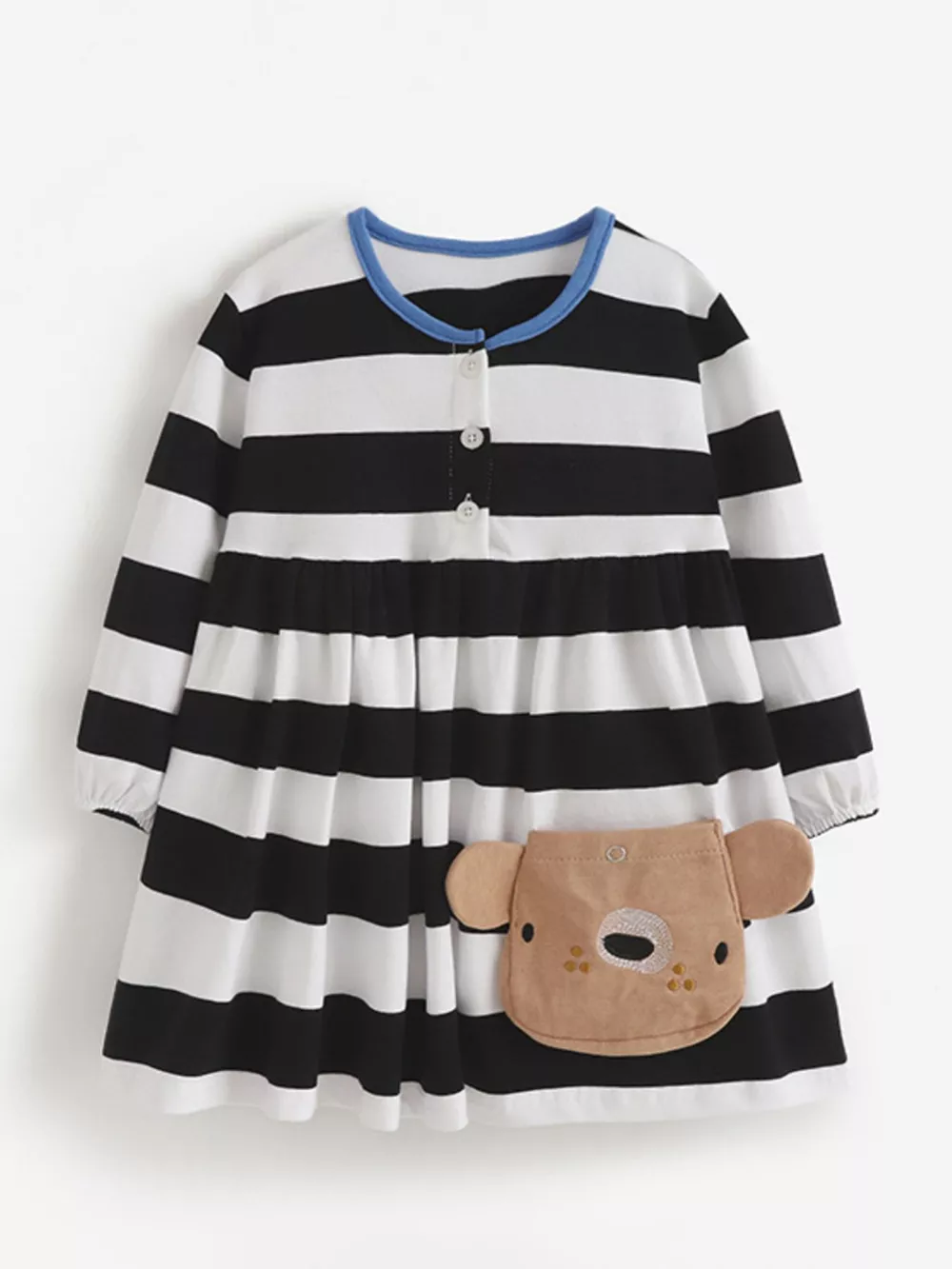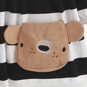 Children's Striped Long Sleeve Bear Applique Dress
