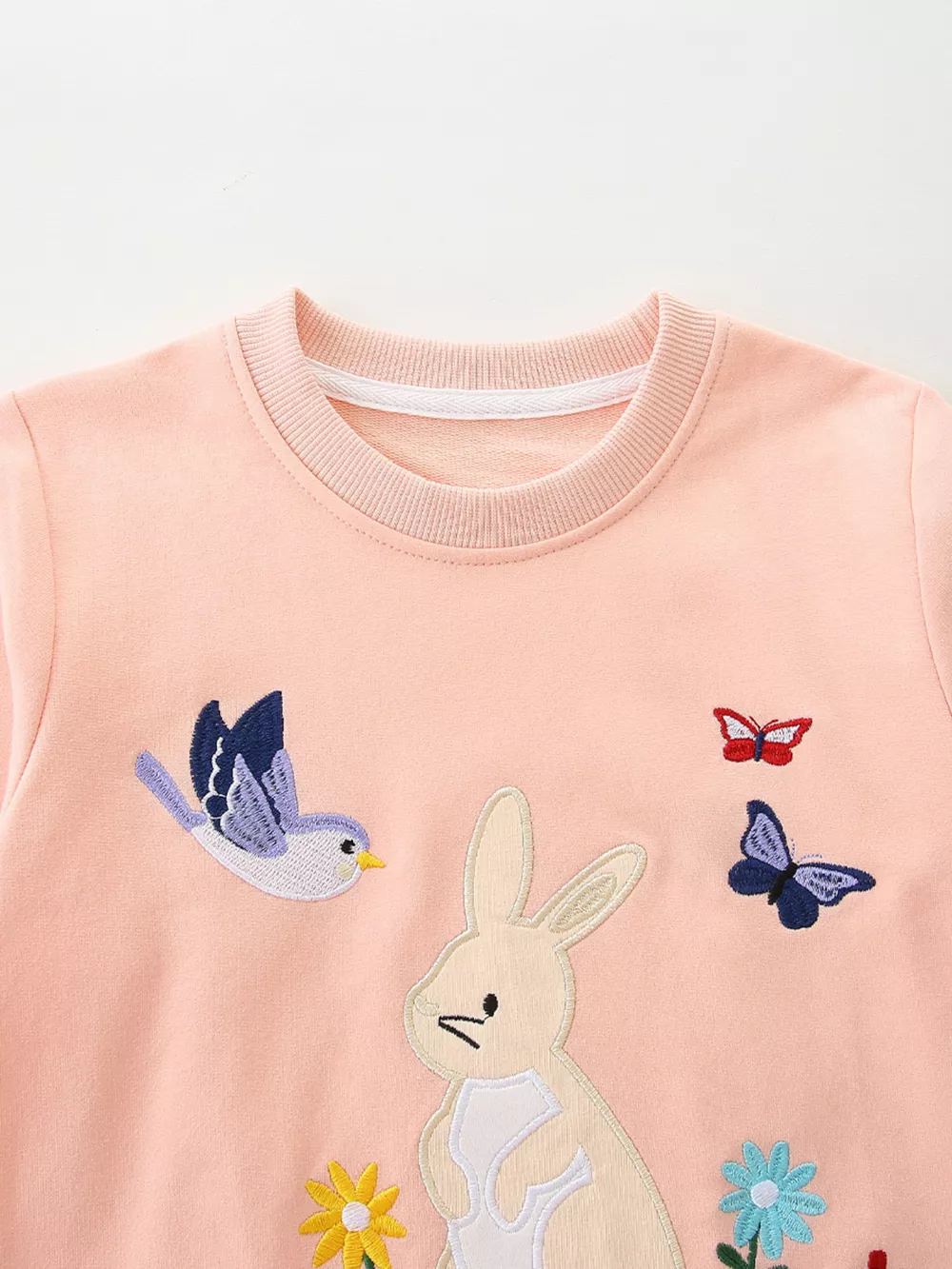 Children's Cute Bunny Embroidered Round Neck Sweatshirt