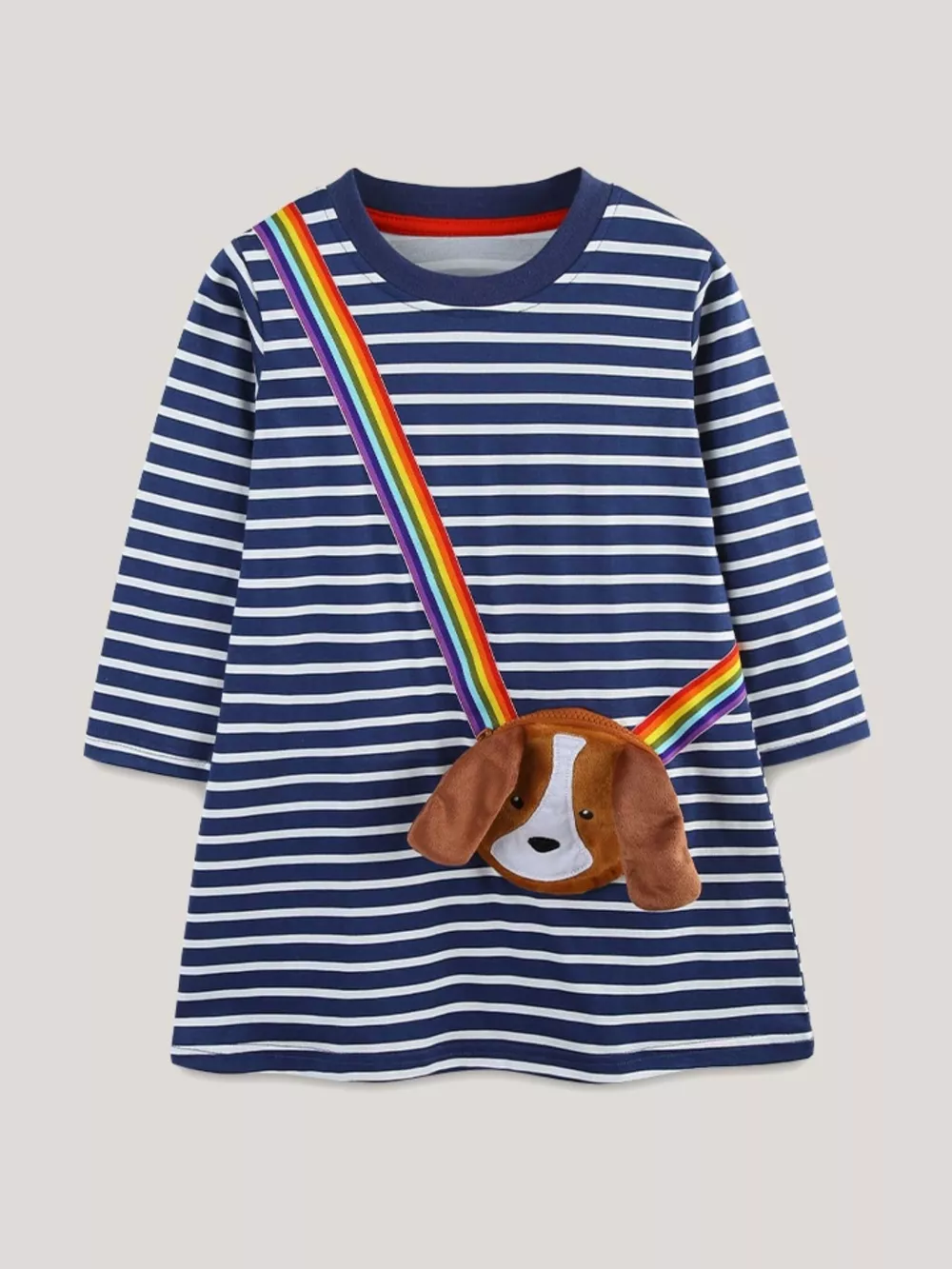 Children's Dog Striped Long Sleeve Dress