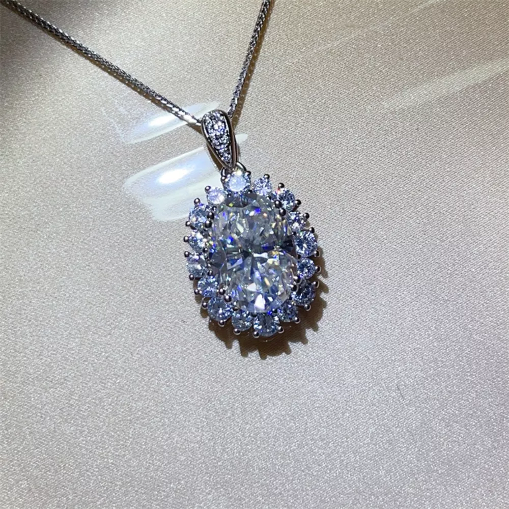8 Carat Moissanite 925 Sterling Silver Pendant Necklace