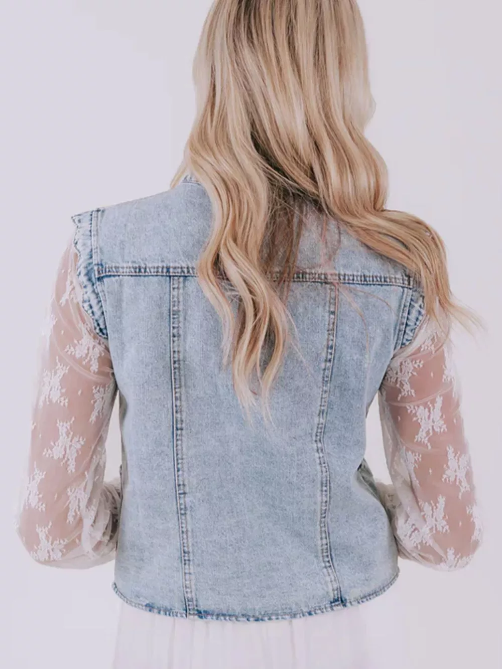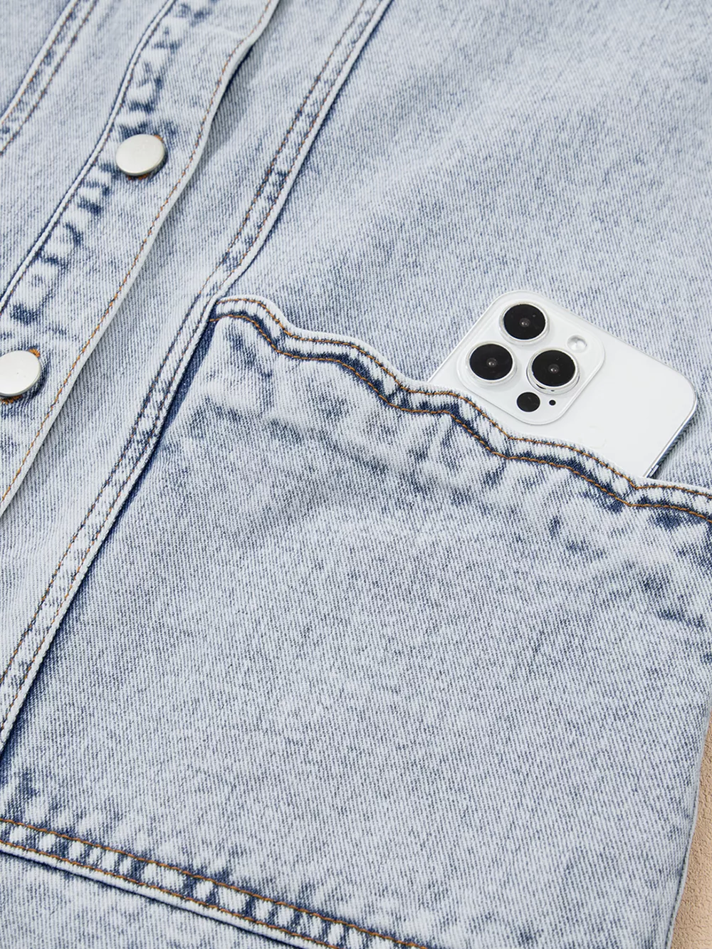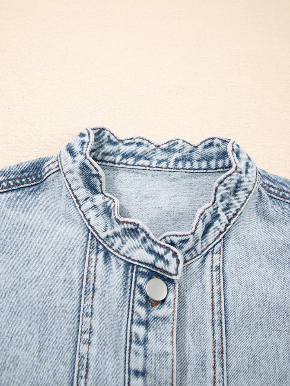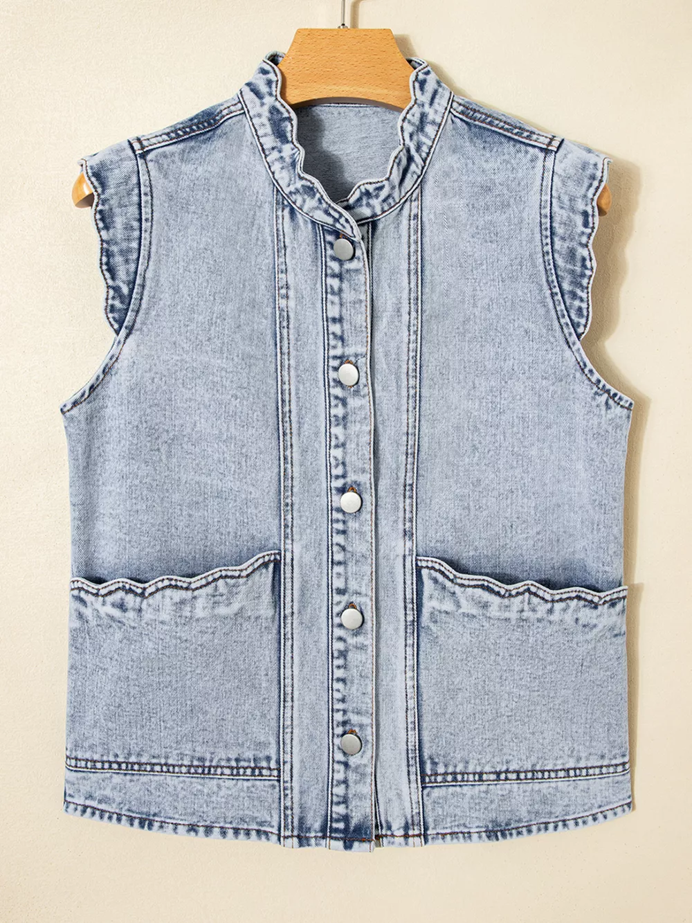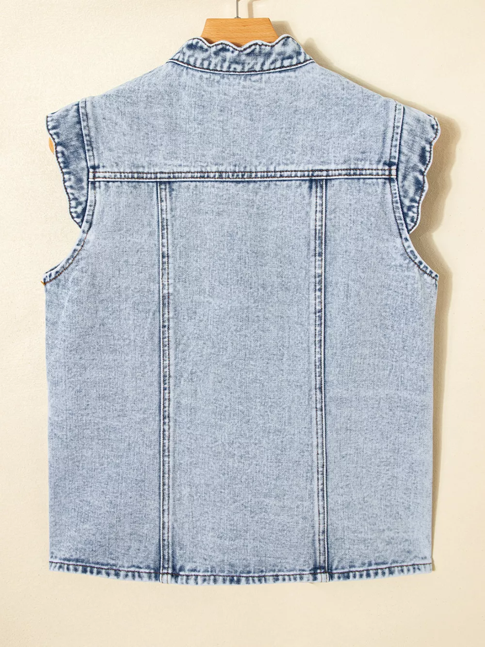 Scalloped Trim Patch Pocket Button Front Denim Vest