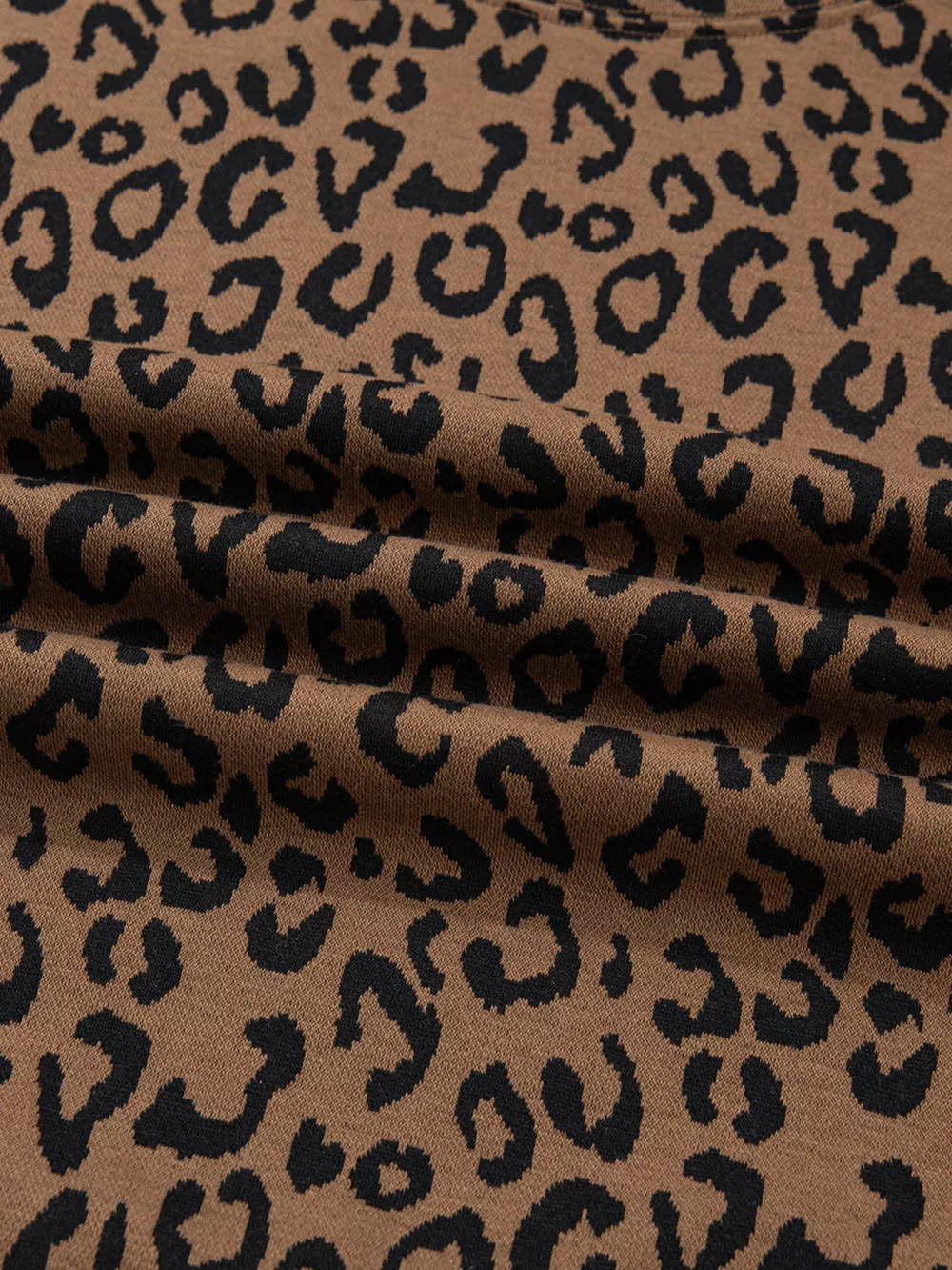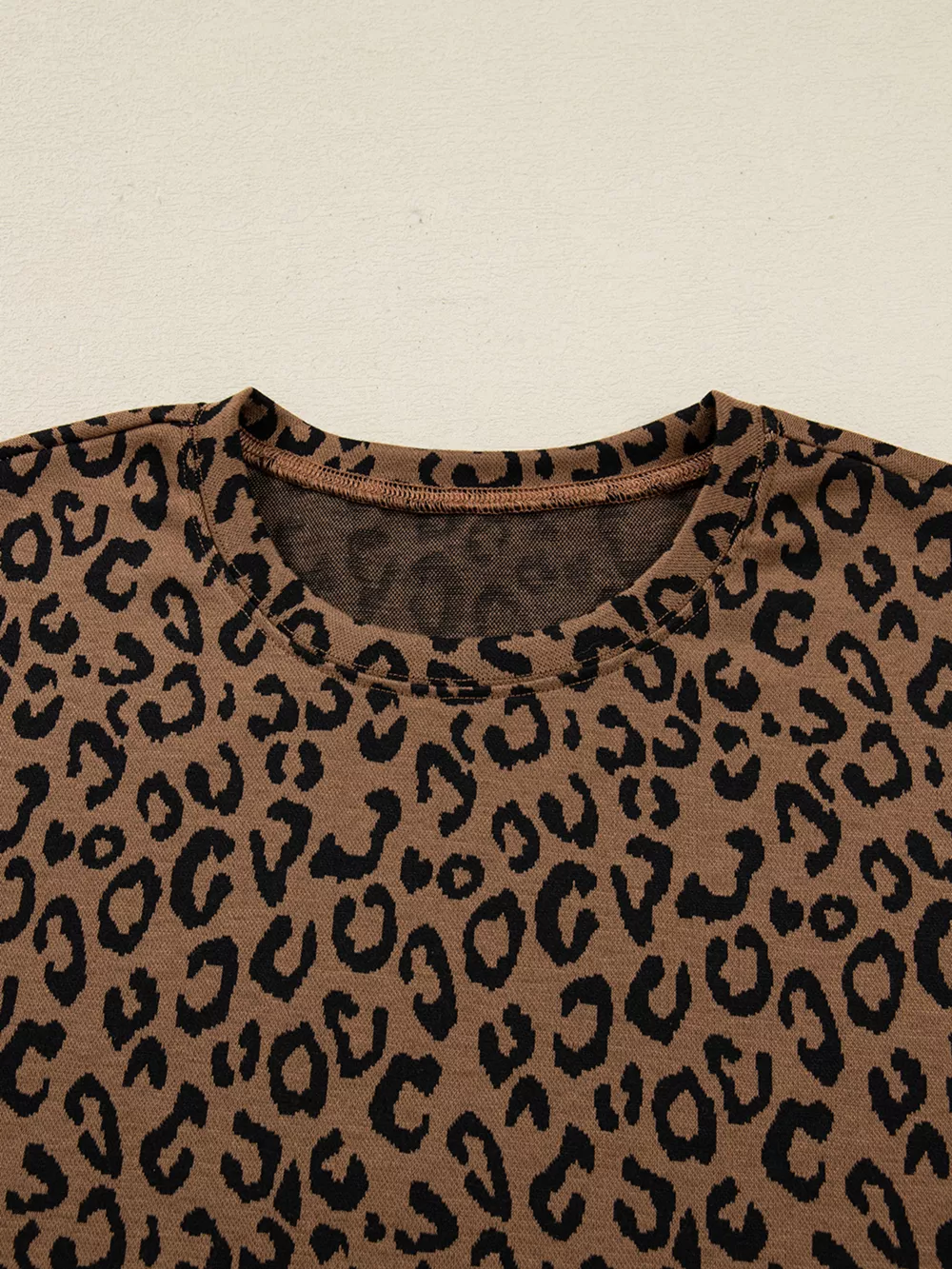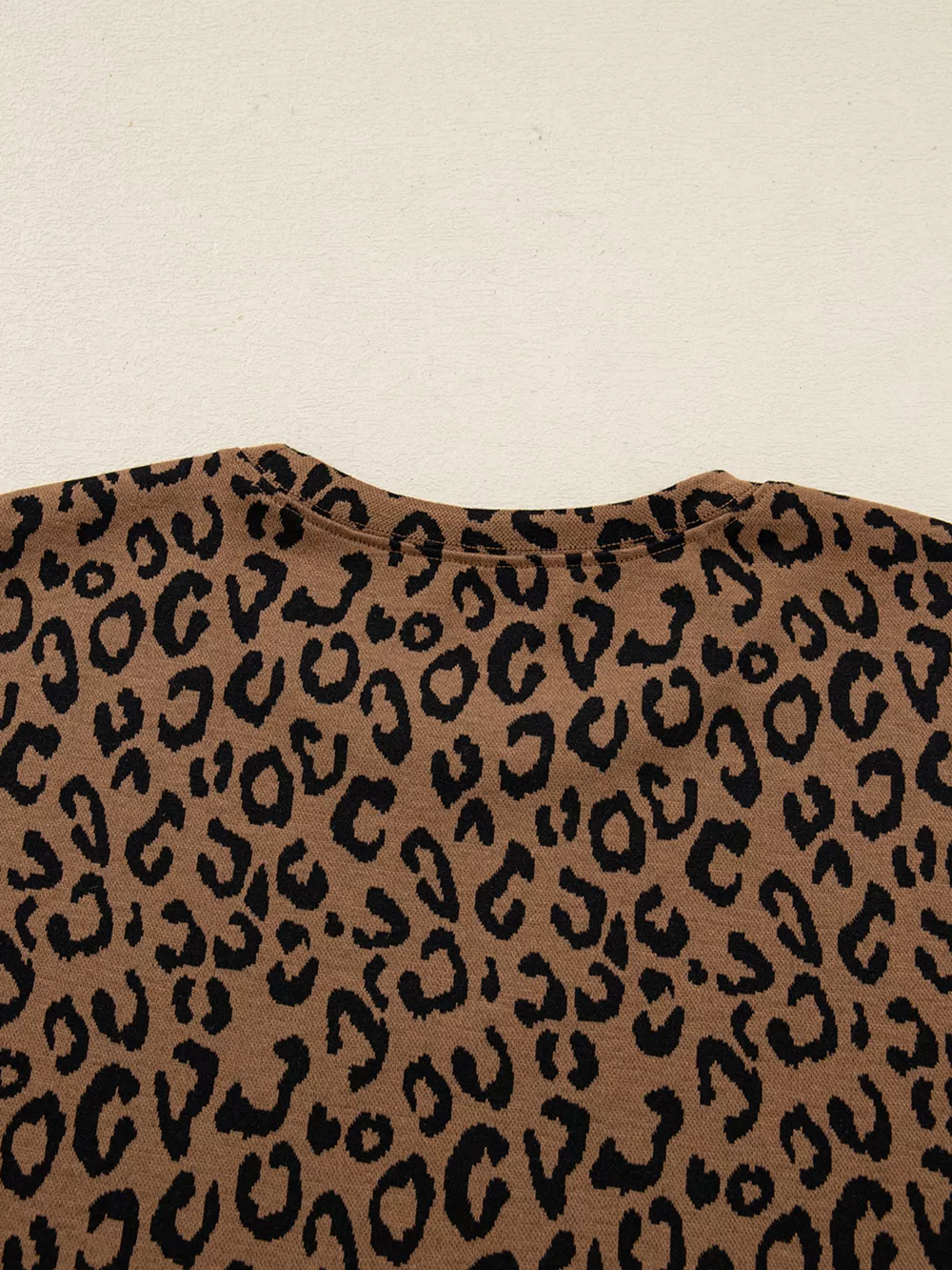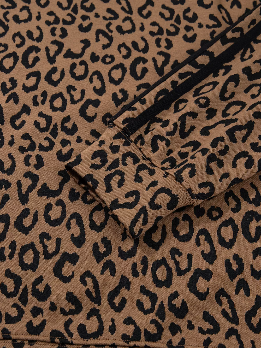Striped Trim Leopard Long Sleeve Top Drawstring Pant Set