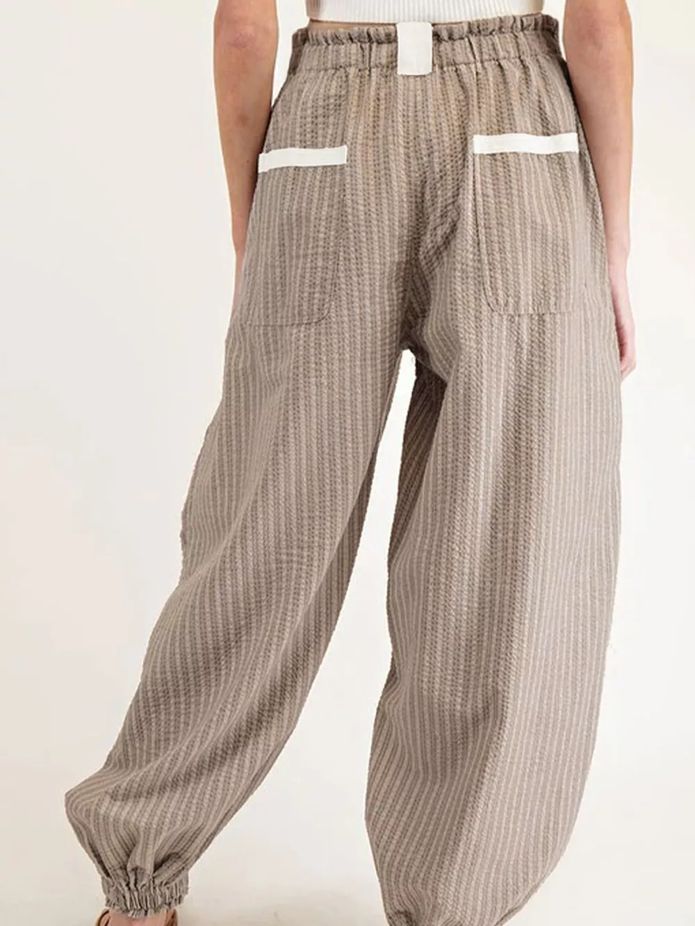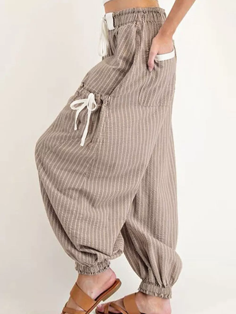 Stripe Drawstring Cargo Jogger Pants with Pockets
