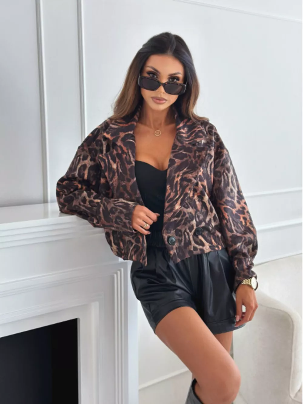 Leopard Print Cropped Blazer