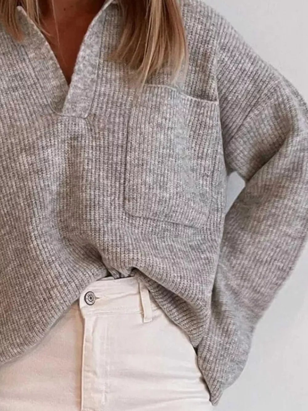 Full Size Johnny Collar Dropped Shoulder Sweater Plus Size