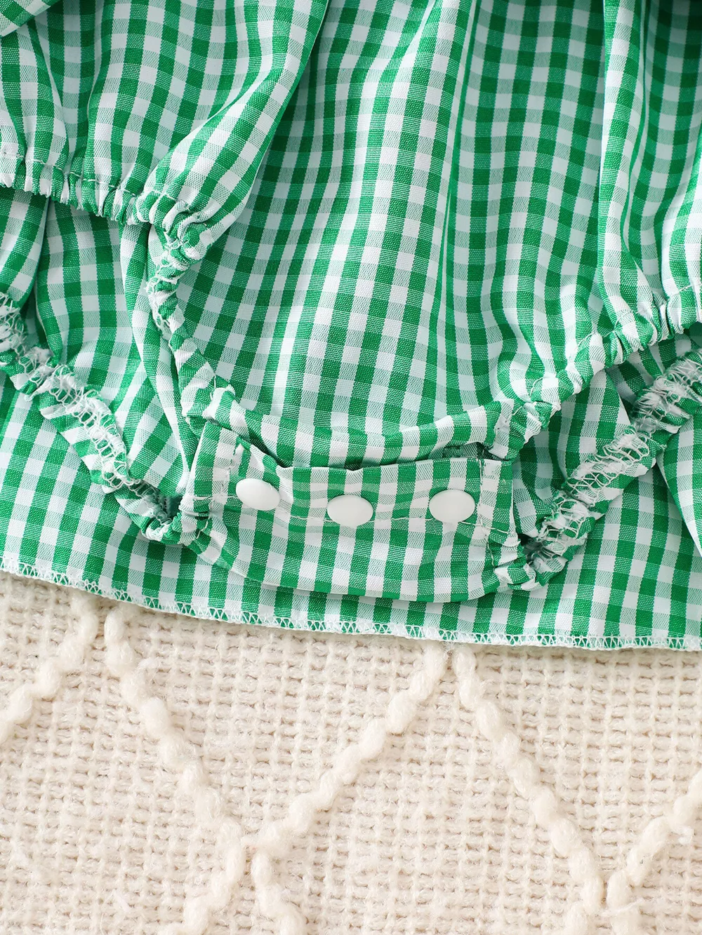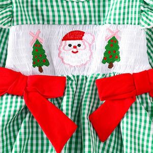 Children's Christmas Santa Embroidered Gingham One-Piece Bodysuit Dress