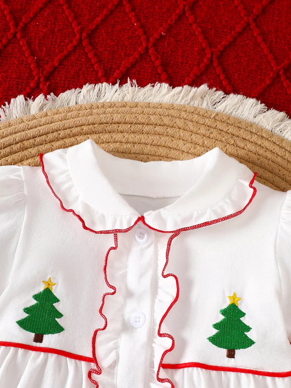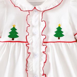 Children's Christmas Tree Embroidered Ruffle Trim Dress