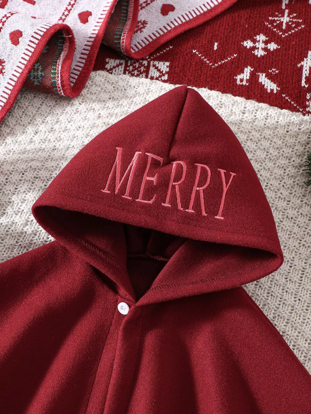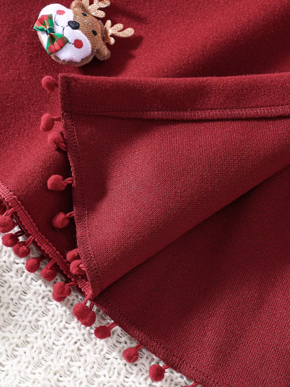 Children's Reindeer Embroidered Christmas Cape Outerwear
