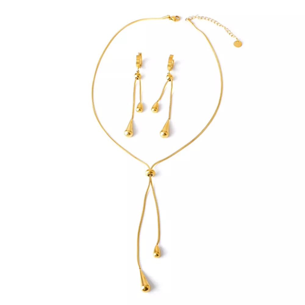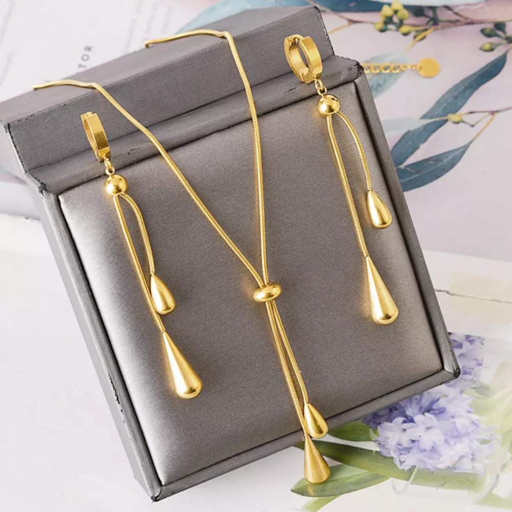 Teardrop Pendant Necklace and Earrings Jewelry Set