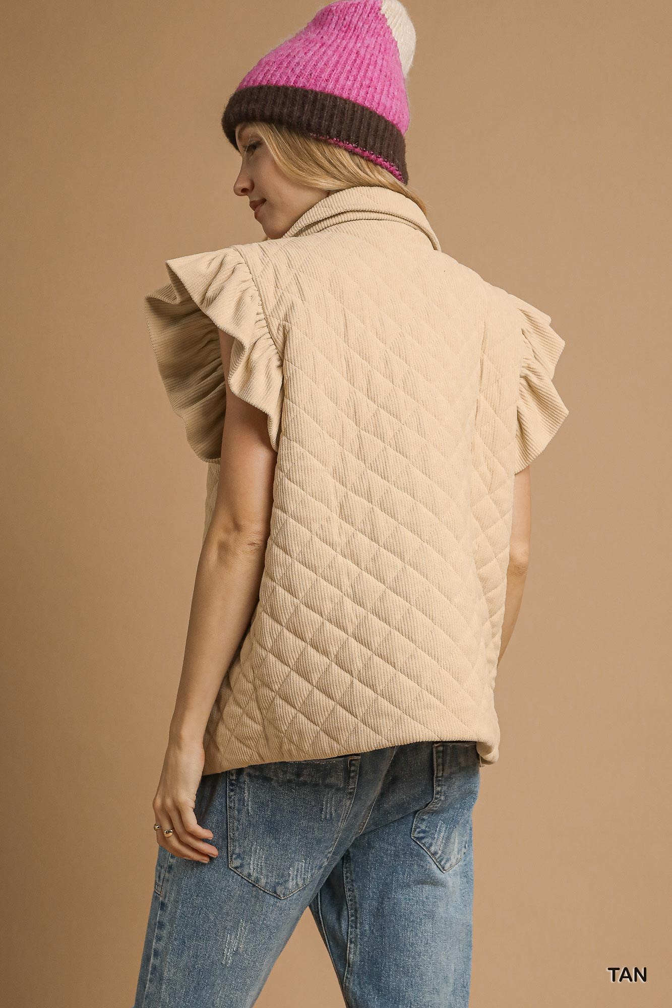 Umgee Corduroy Quilted Ruffle Sleeve Vest