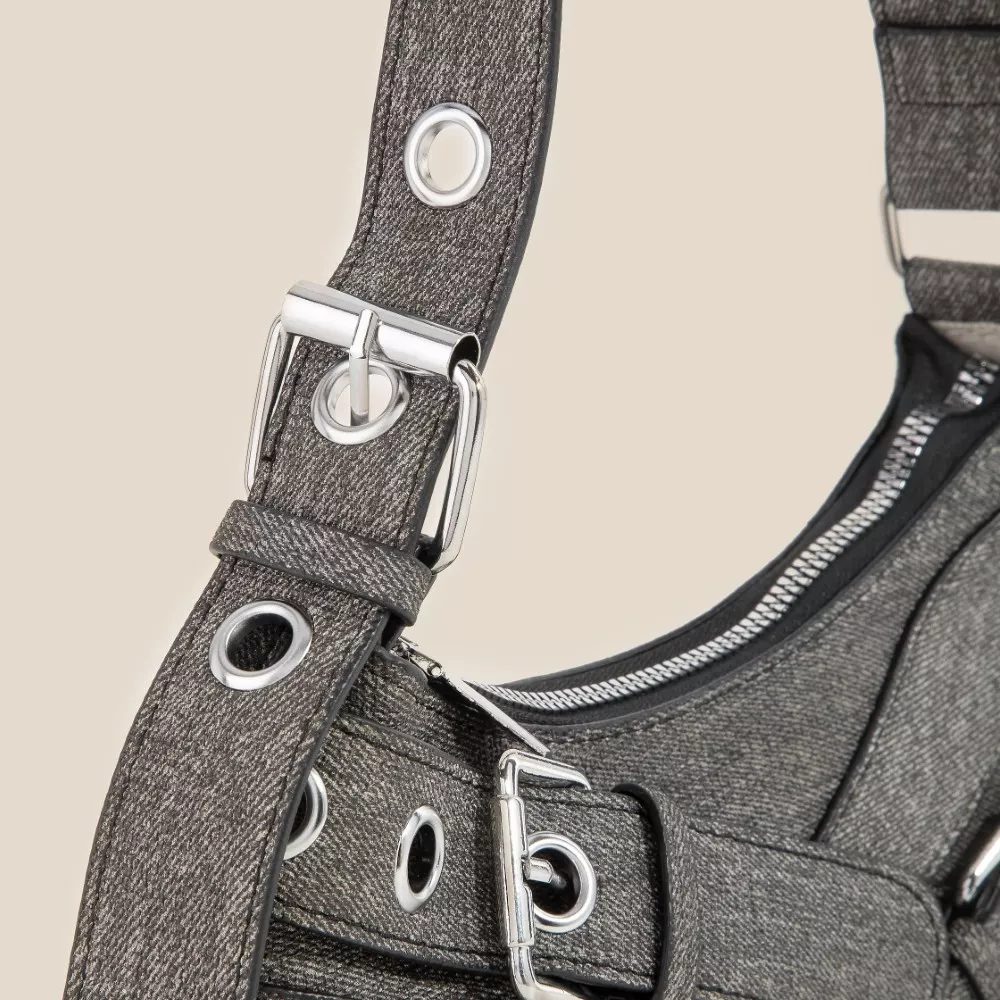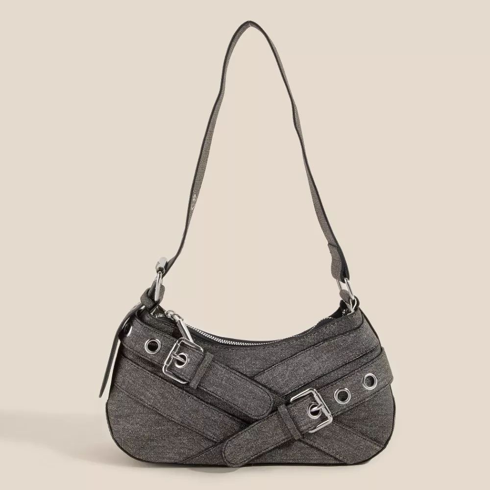 Introducing the Denim Belt Accent Shoulder Bag, a trendy and versatile accessory for your everyday looks. This shoulder bag features a stylish denim material with a chic belt accent for a touch of modern flair. Perfect for adding a cool and casual vibe to your outfits, whether you're running errands or heading out with friends. The spacious interior offers ample room for your essentials, making it both fashionable and functional. Elevate your style with the Denim Belt Accent Shoulder Bag and make a fashion statement wherever you go!