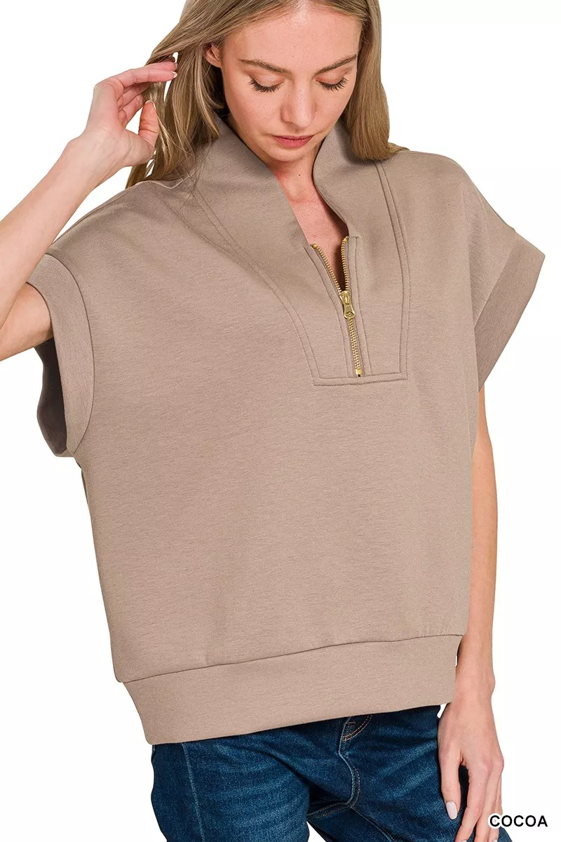 Zenana Scuba High Neck Half Zip Top