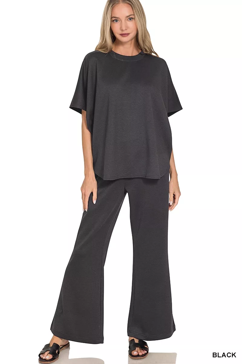 Zenana Scuba Curbed Hem Top & Pants Set
