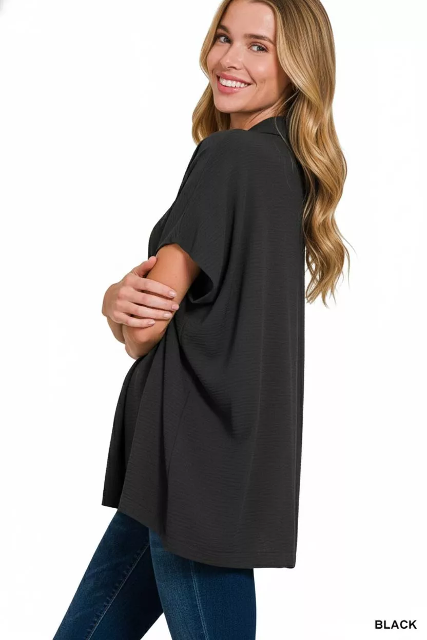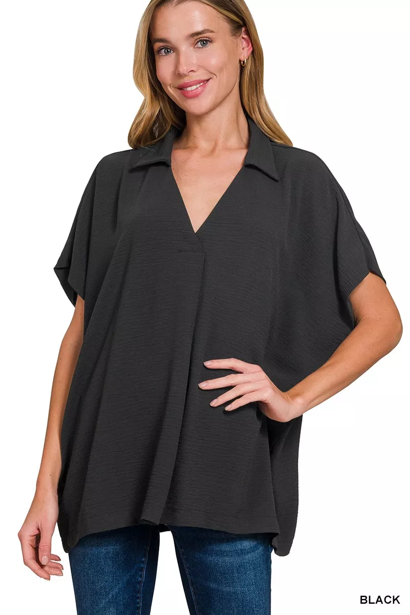 The Woven Airflow Collared Short Sleeve Top is a versatile and breathable addition to your wardrobe. With a collared neckline, it exudes a polished and chic look suitable for a variety of occasions. The short sleeves offer a casual and comfortable fit, perfect for warmer weather. Made of airflow fabric, this top provides breathability and comfort throughout the day. Elevate your outfit with this stylish and easy-to-wear woven top.