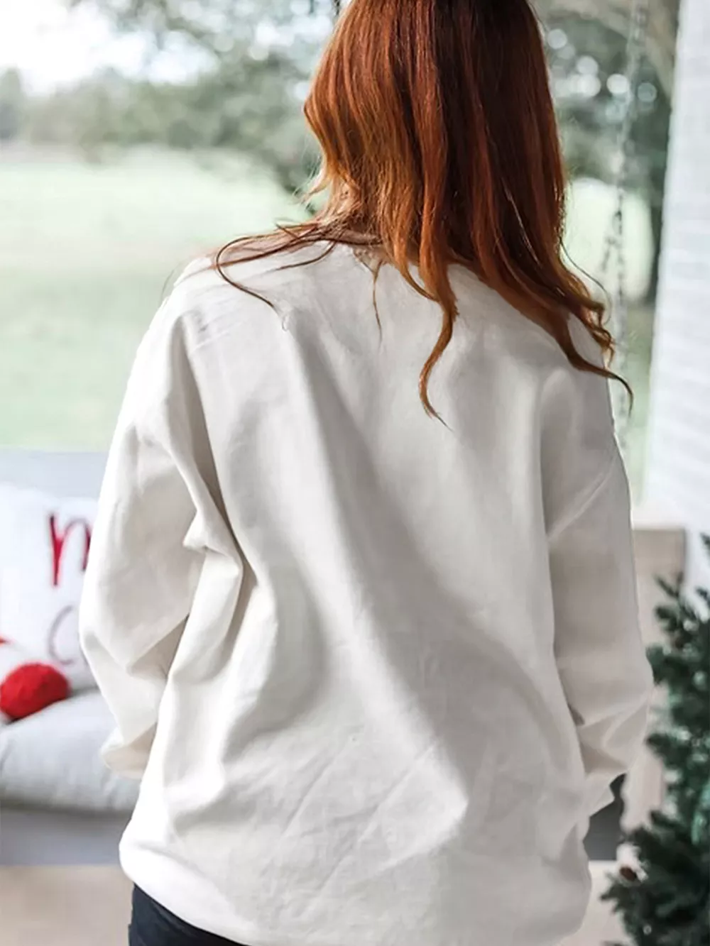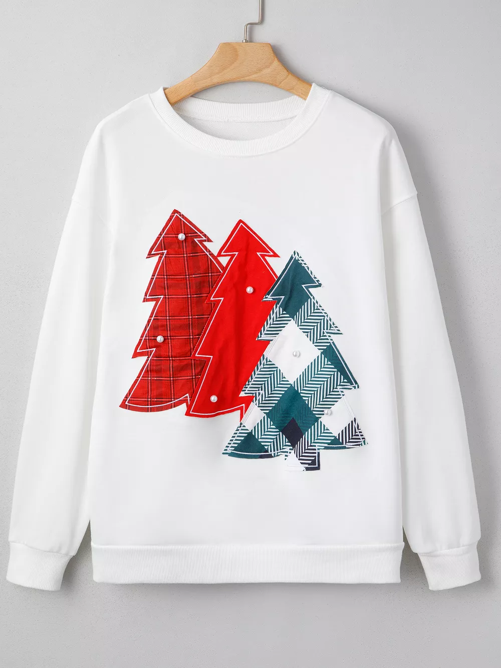 Pearl Plaid Christmas Tree Patched Drop Shoulder Sweatshirt
