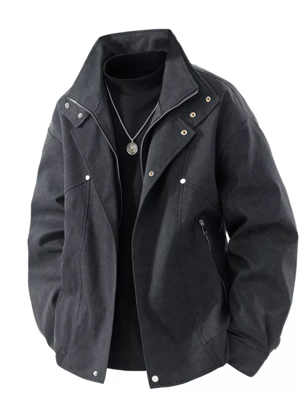 Men's Plus Size Casual Stand Collar Zipper Jacket