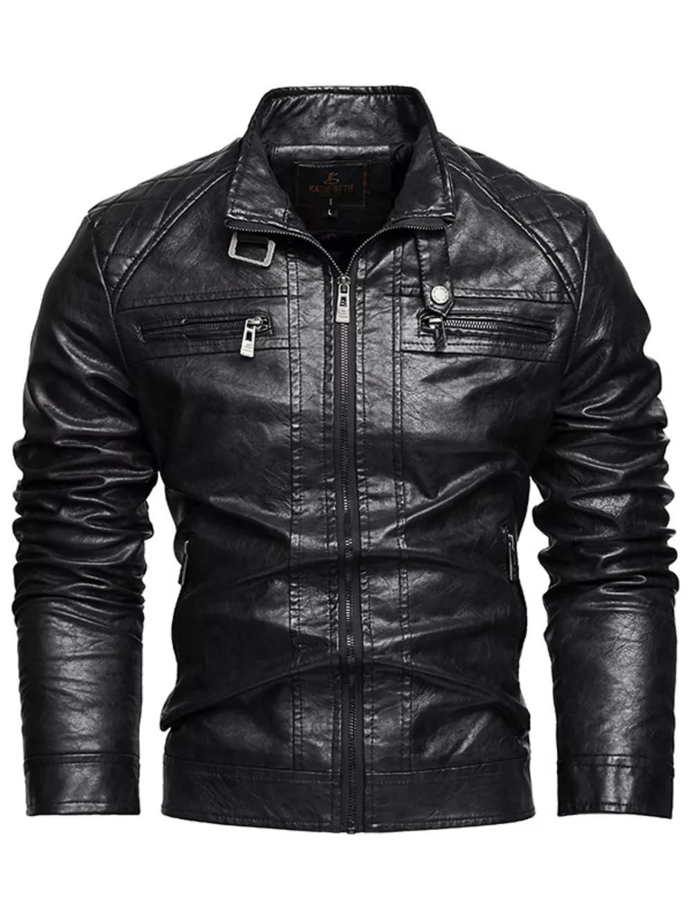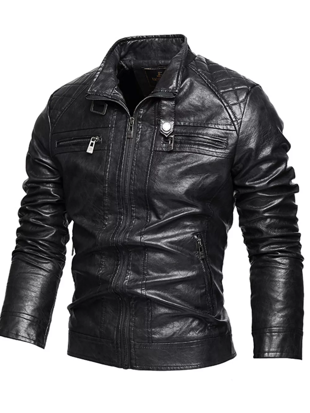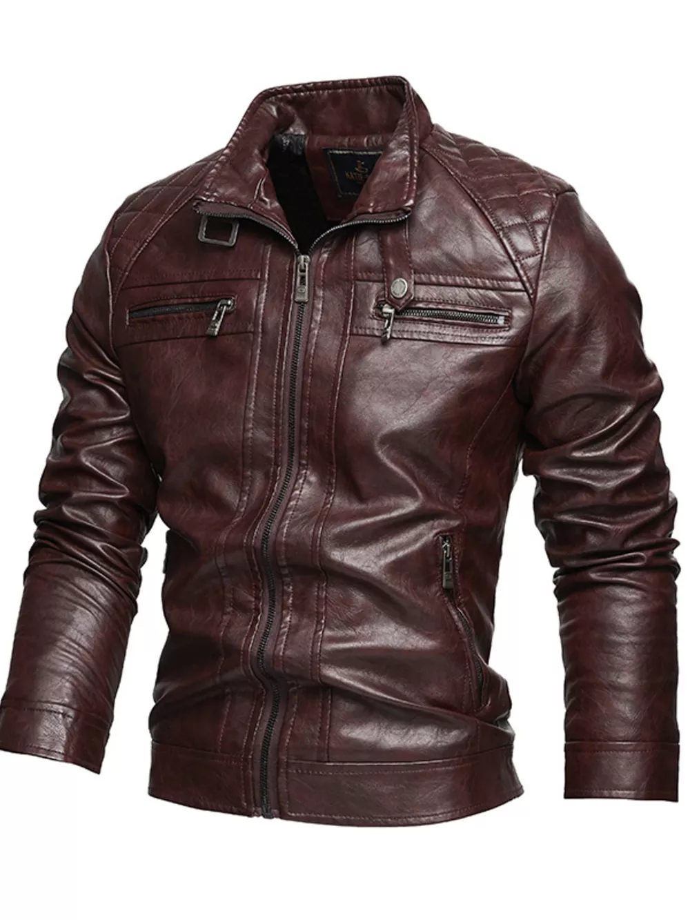 Men's Zip Up Faux Leather Moto Jacket