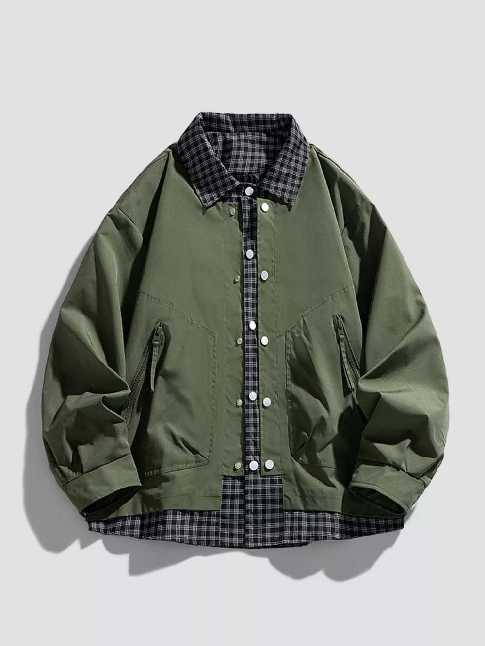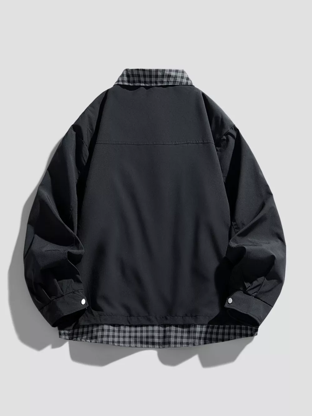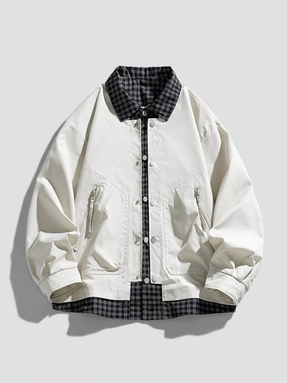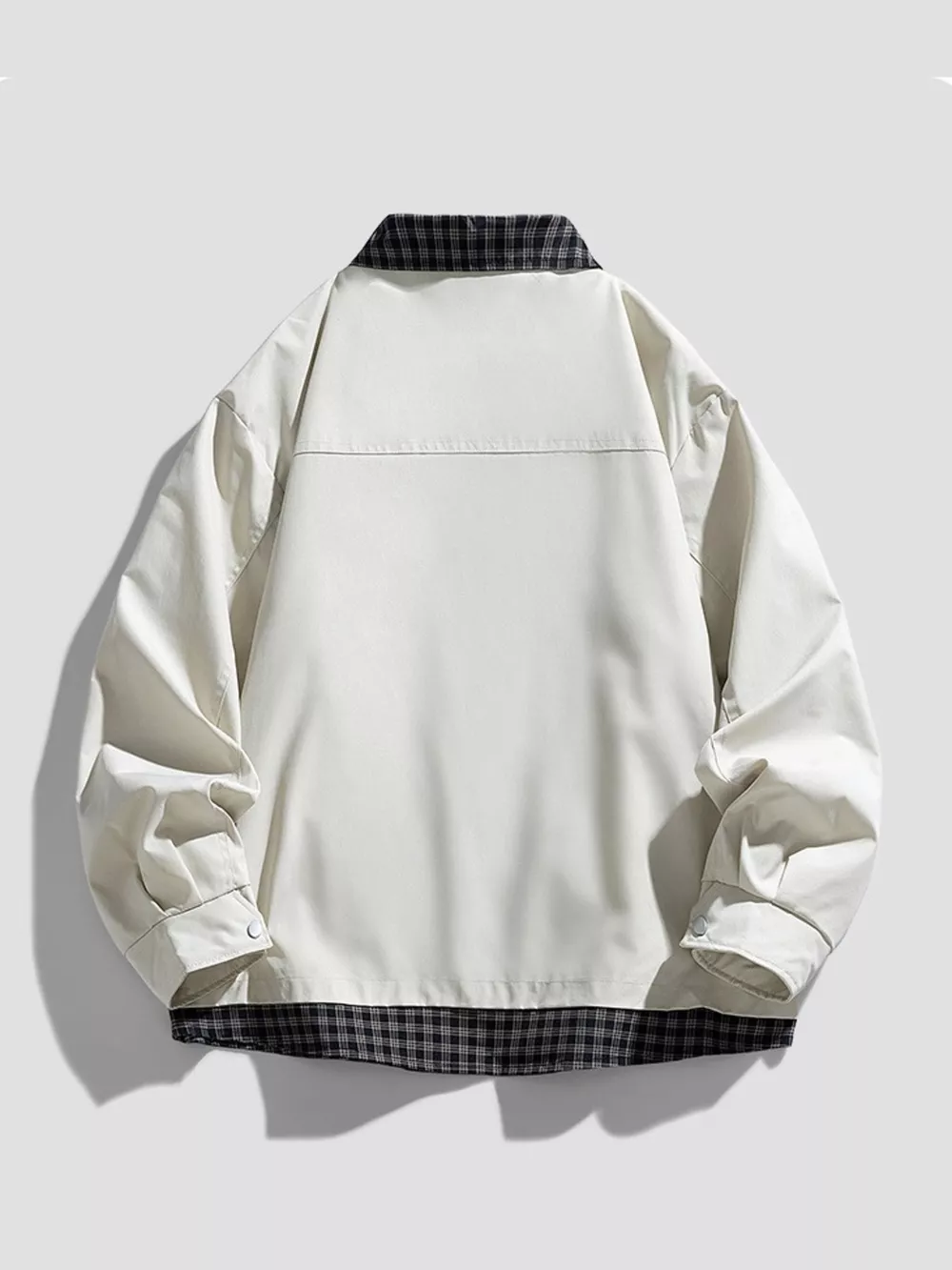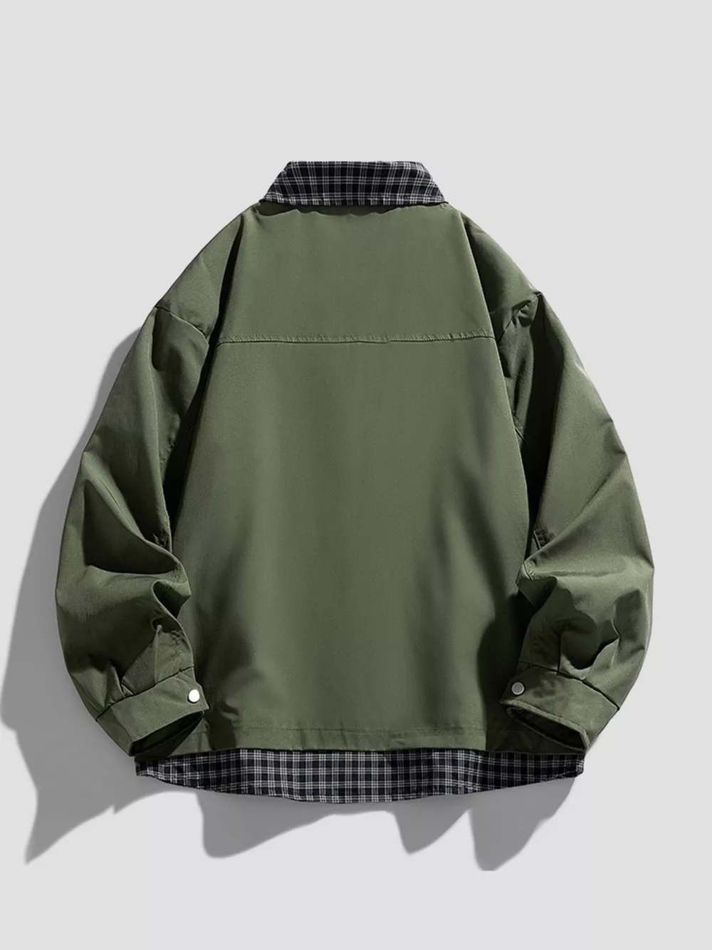 Men's Plus Size Plaid Trim Snap Down Casual Jacket