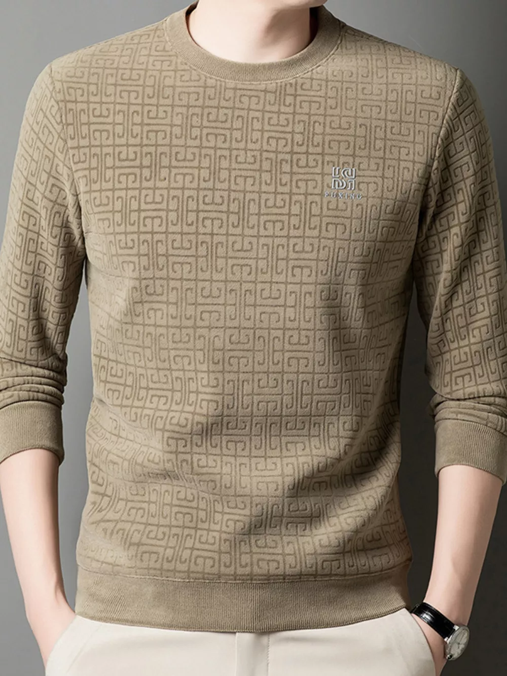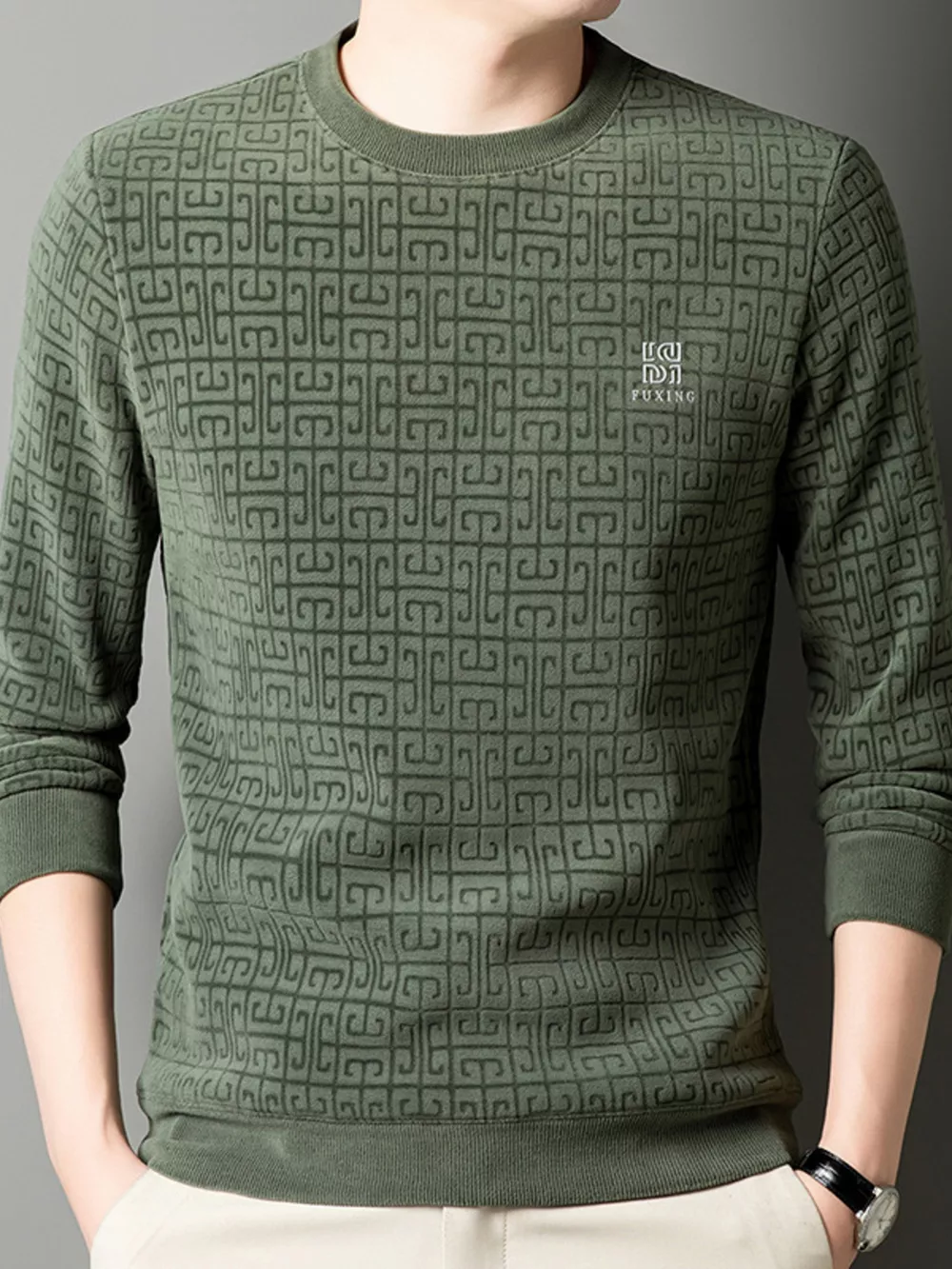 Men's Plus Size Long Sleeve Textured Casual Knit Top
