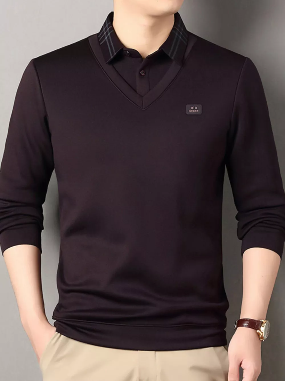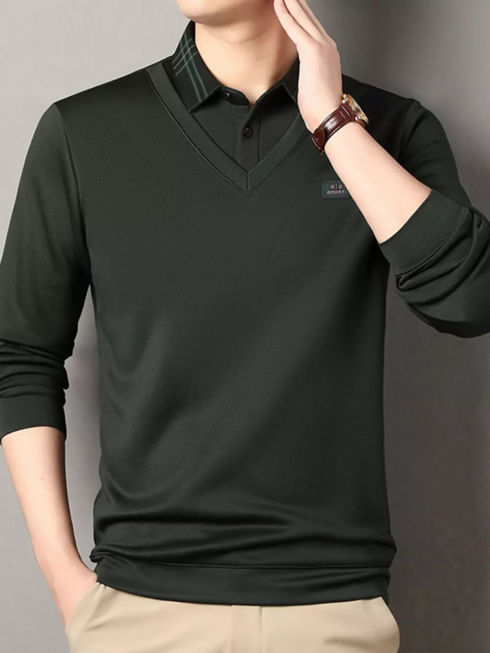 Men's Plus Size Collared Neck Long Sleeve Polo