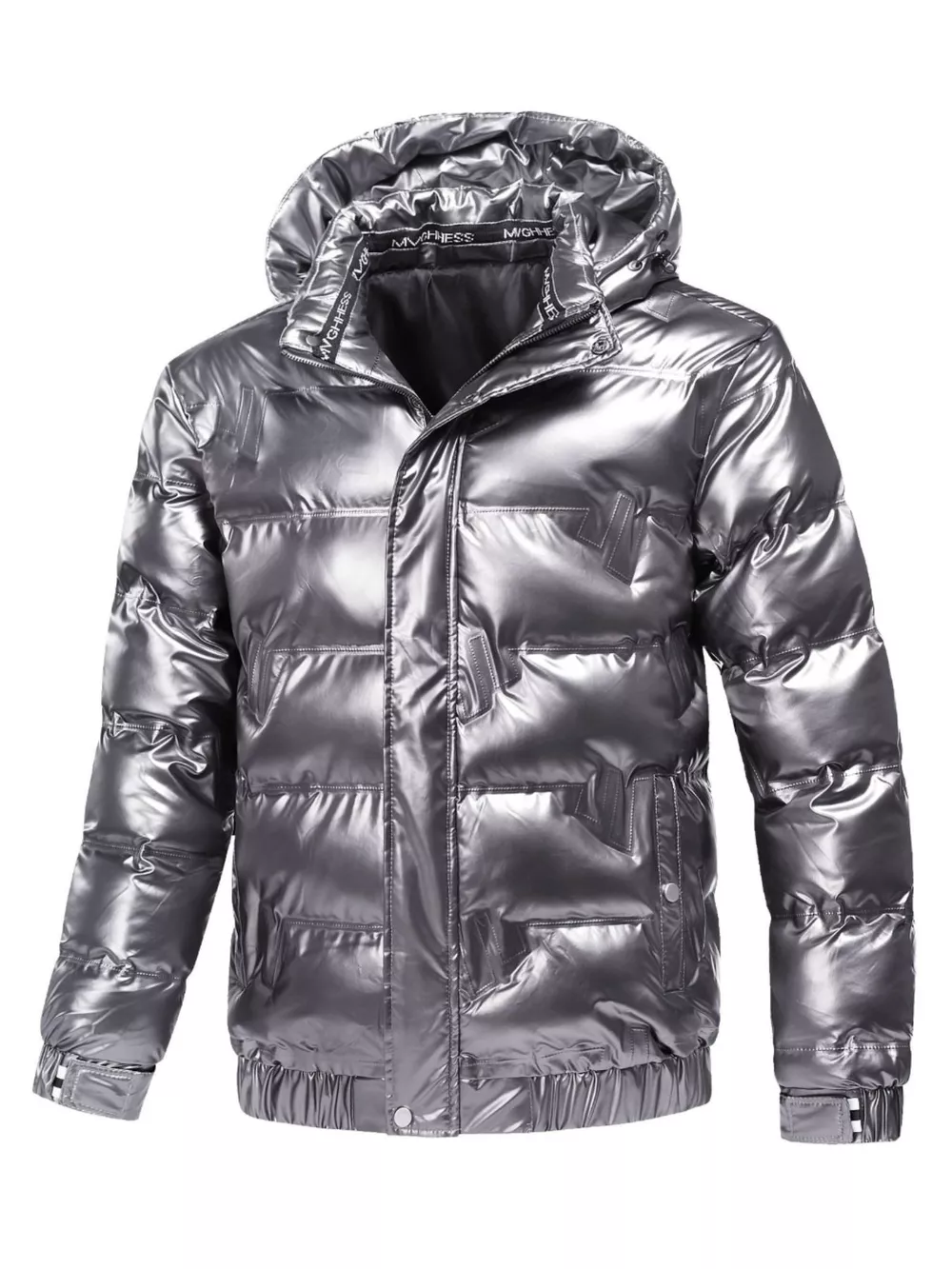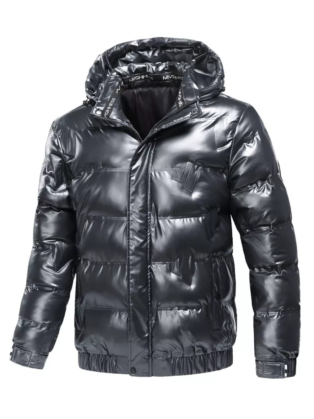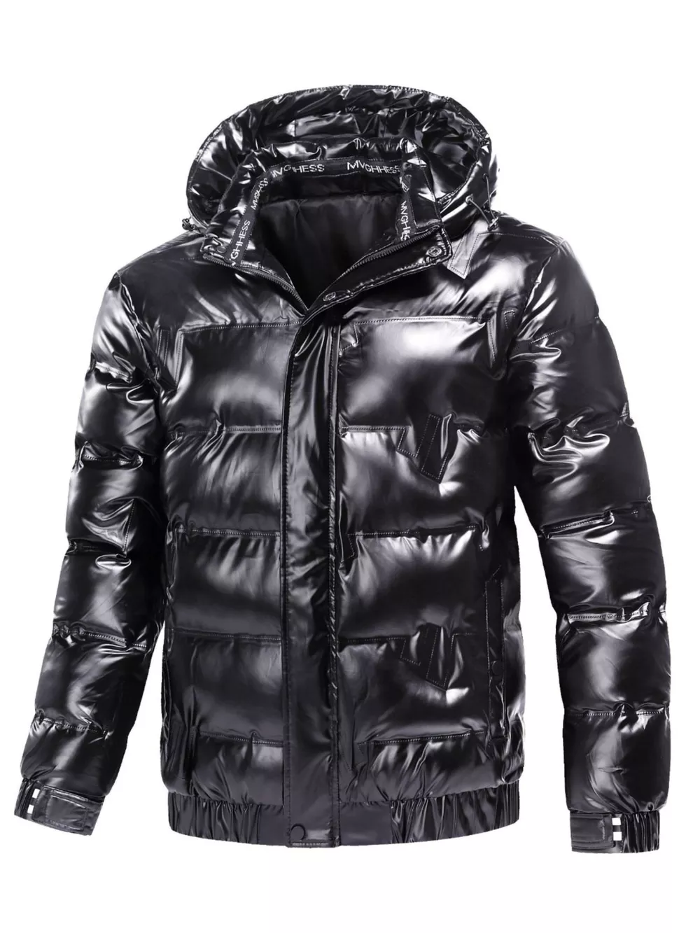 Men's Plus Size Zip Up Puffer Jacket with Hood