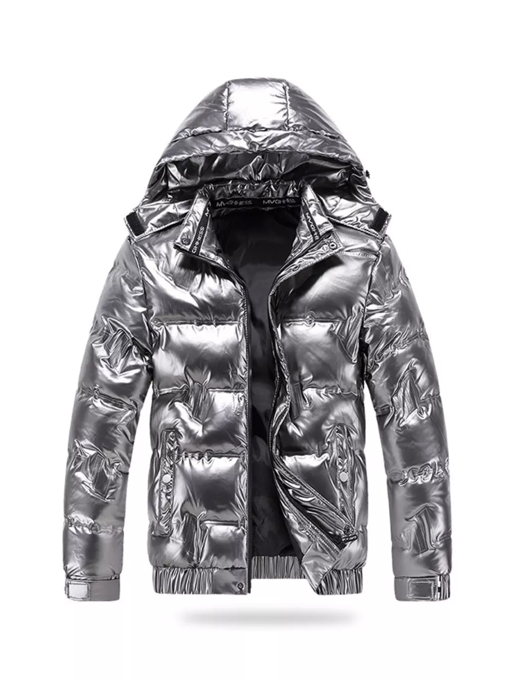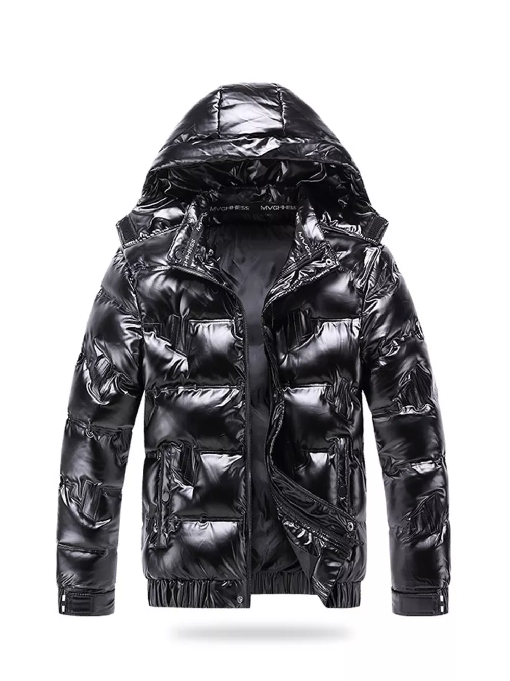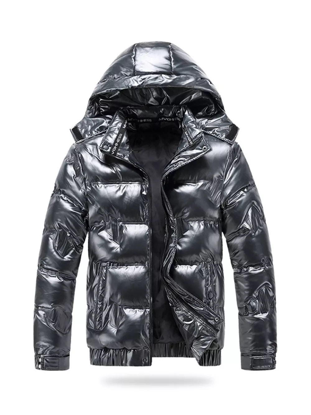 Men's Plus Size Zip Up Puffer Jacket with Hood