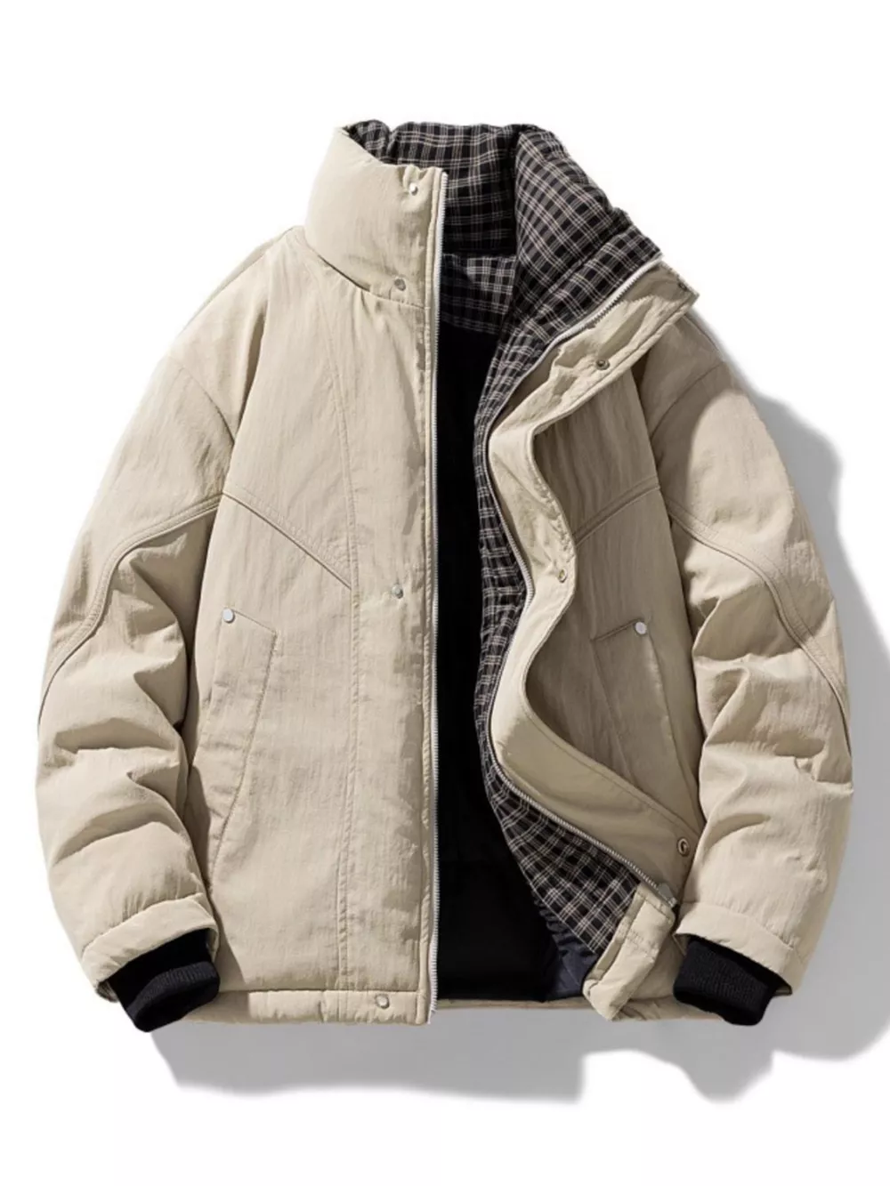 Men's Plus Size Plaid Lined Zip Up Jacket