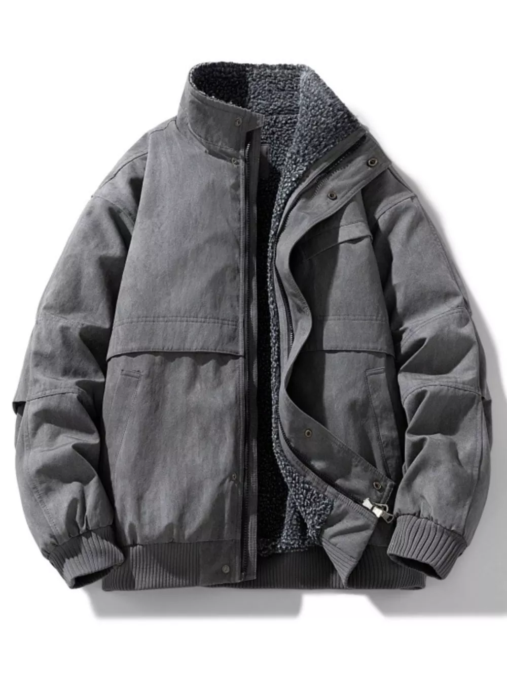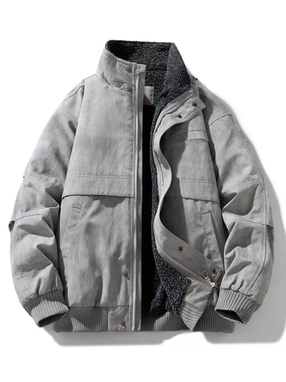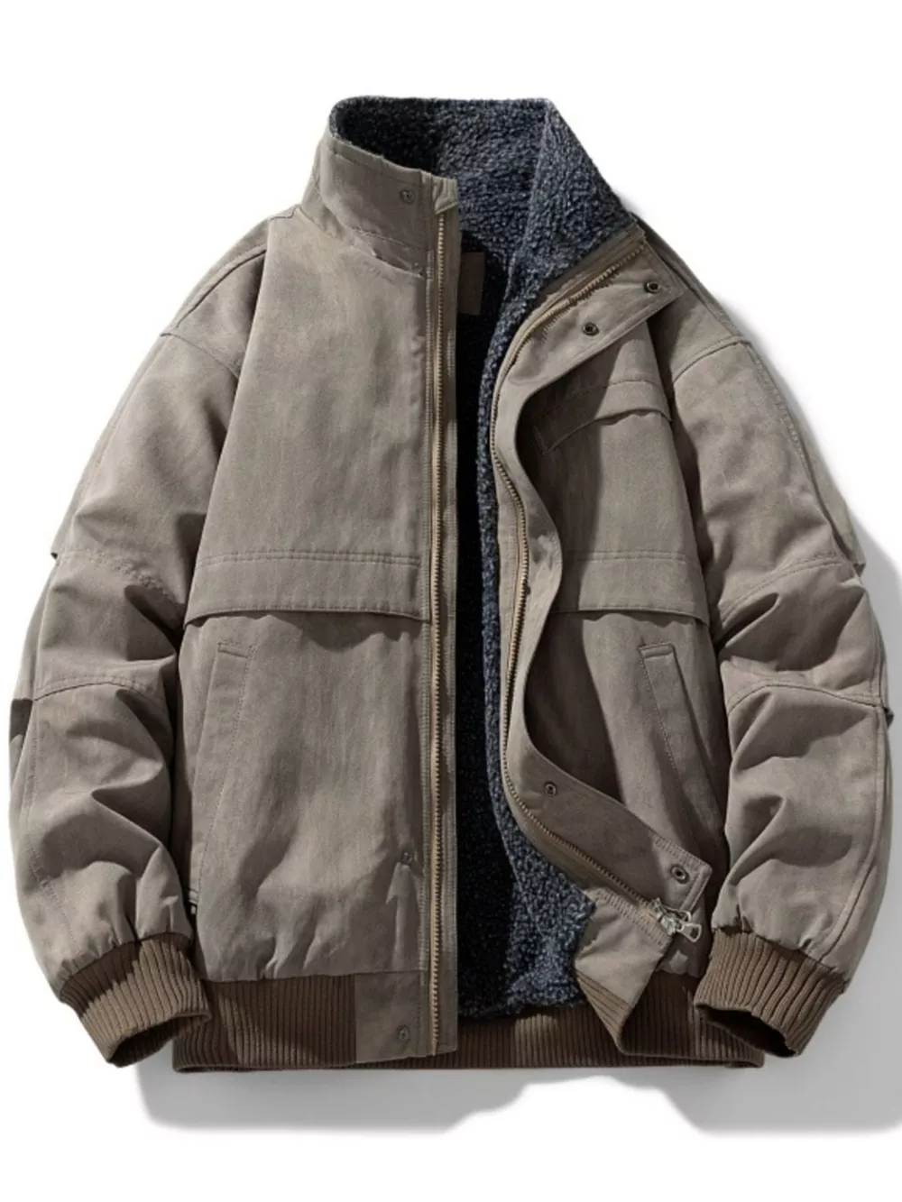 Men's Plus Size Sherpa Lined Stand Collar Bomber Jacket