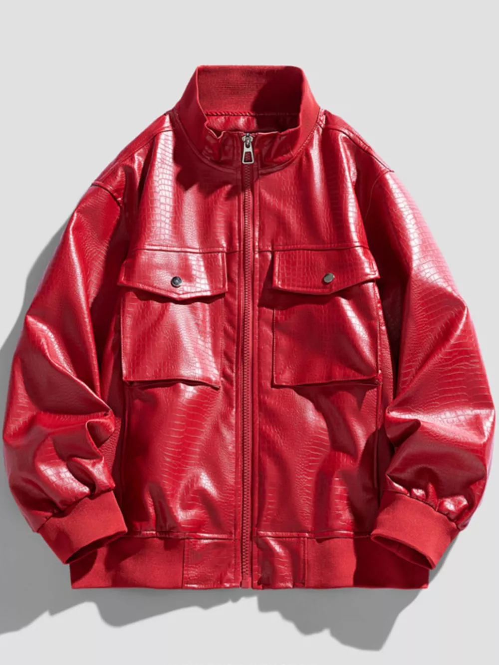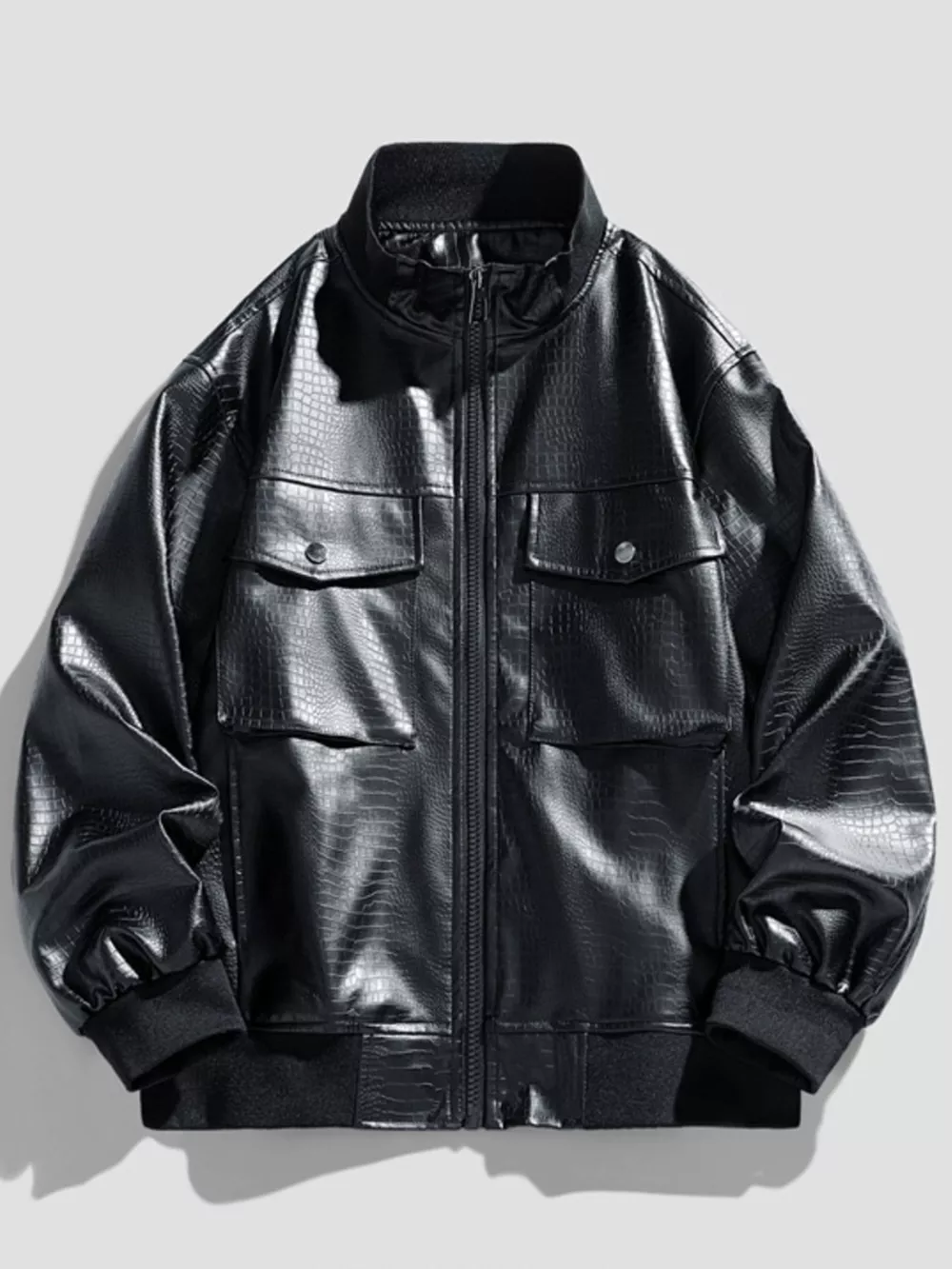 Men's Plus Size Zip Up Leather Jacket