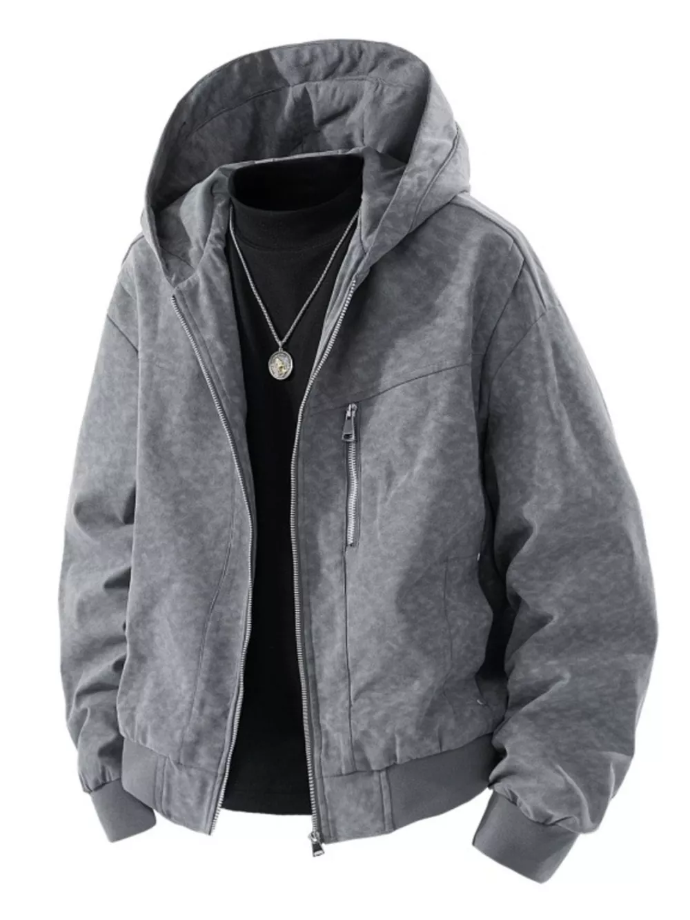Men's Plus Size Zip Up Hooded Bomber Jacket