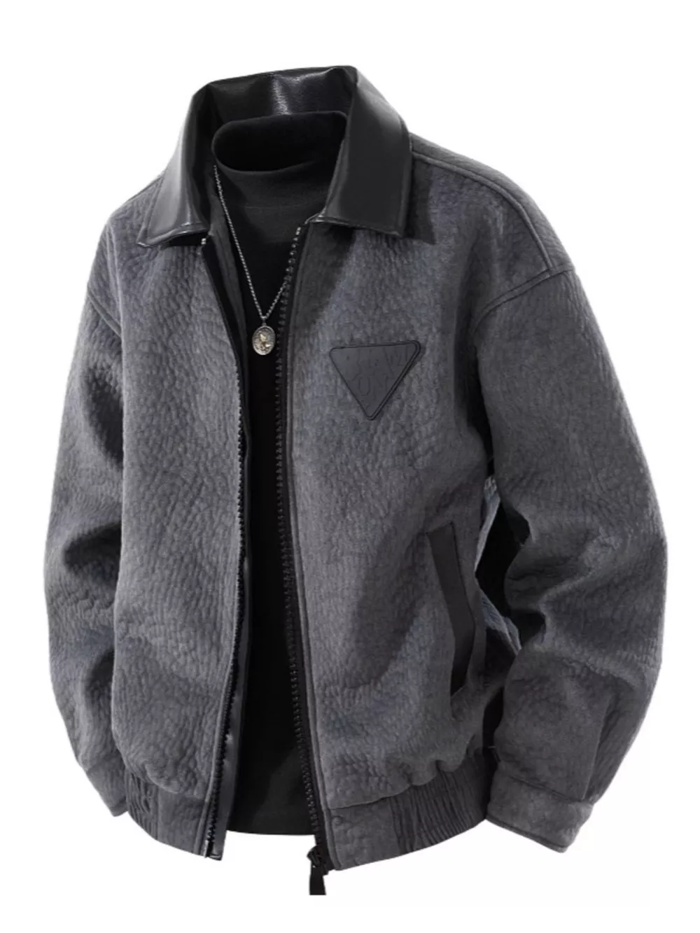 Men's Plus Size Leather Trimmed Zip Up Jacket