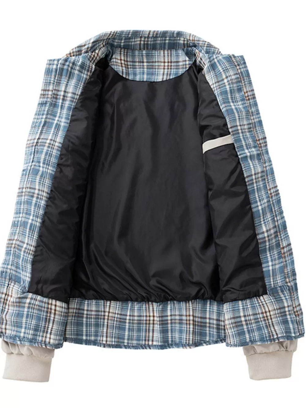 Men's Plus Size Plaid Trim Long Sleeve Jacket