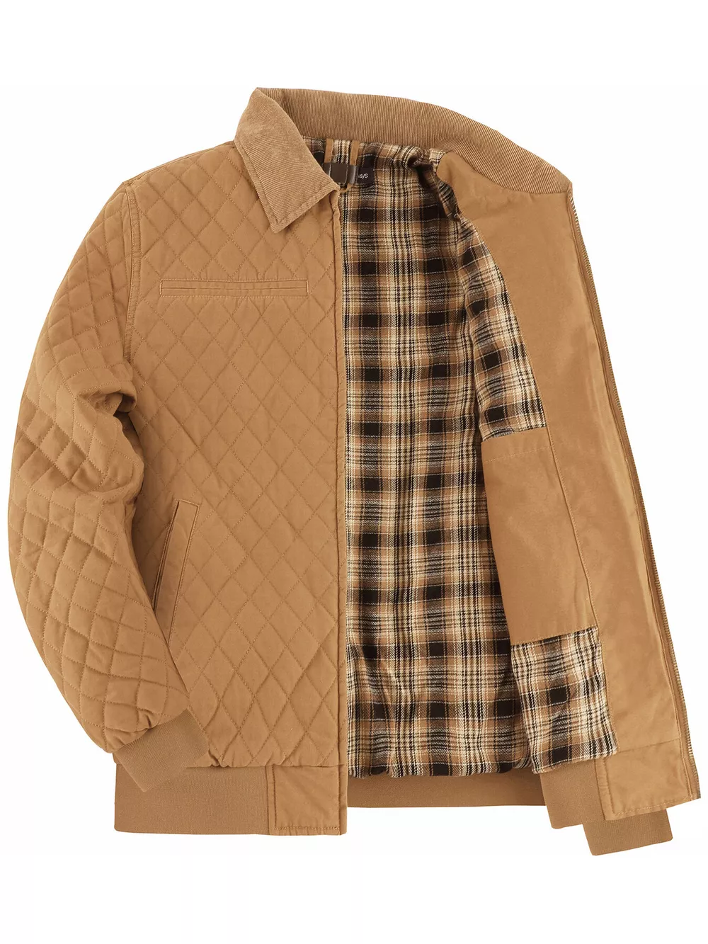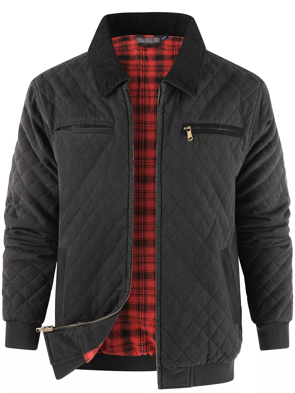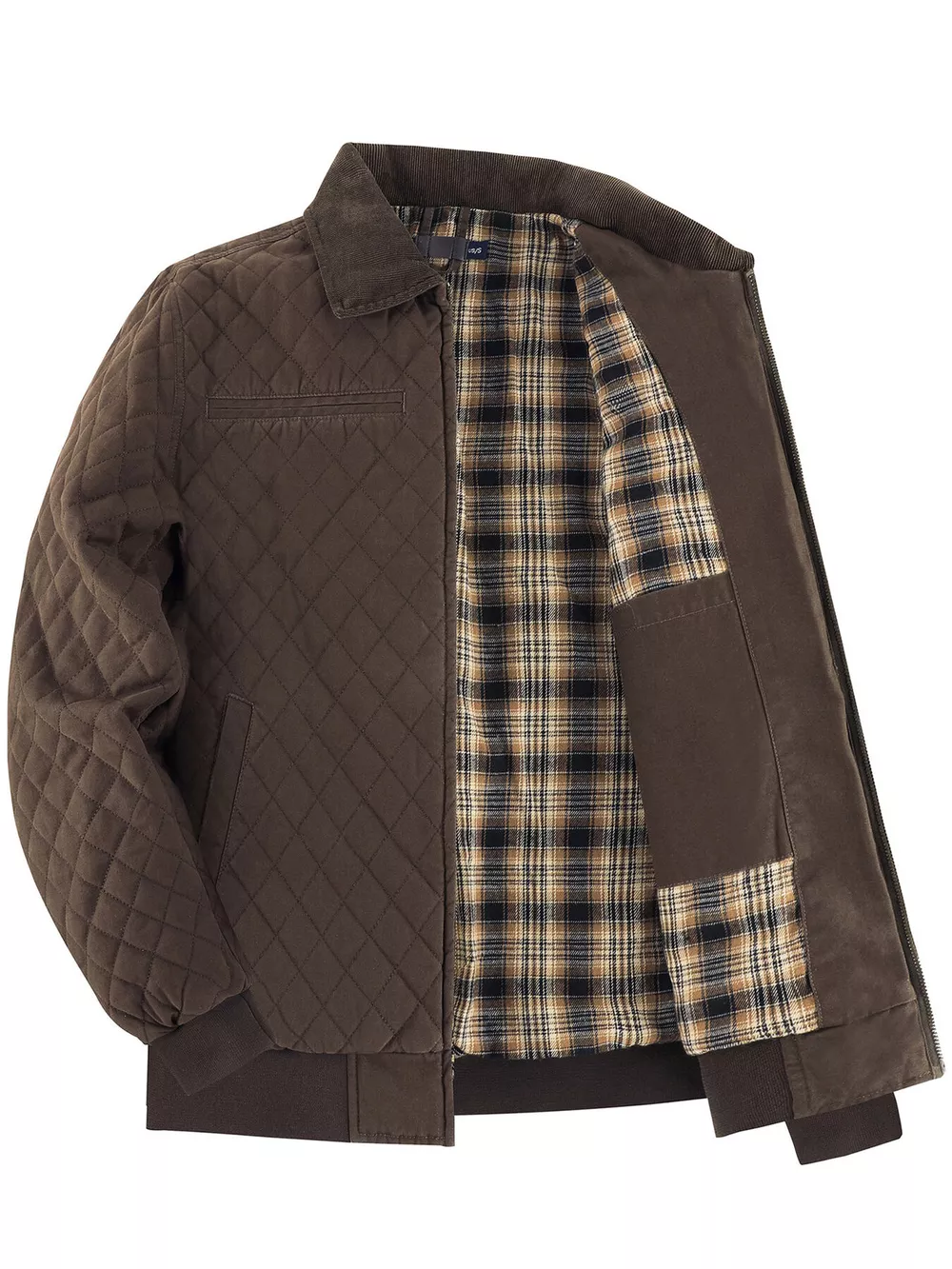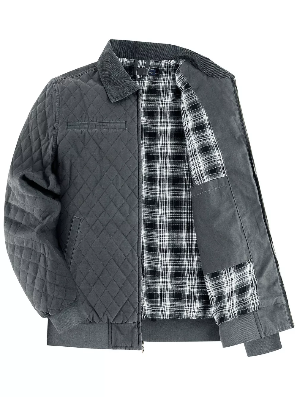Men's Quilted Collared Neck Jacket with Plaid Lining