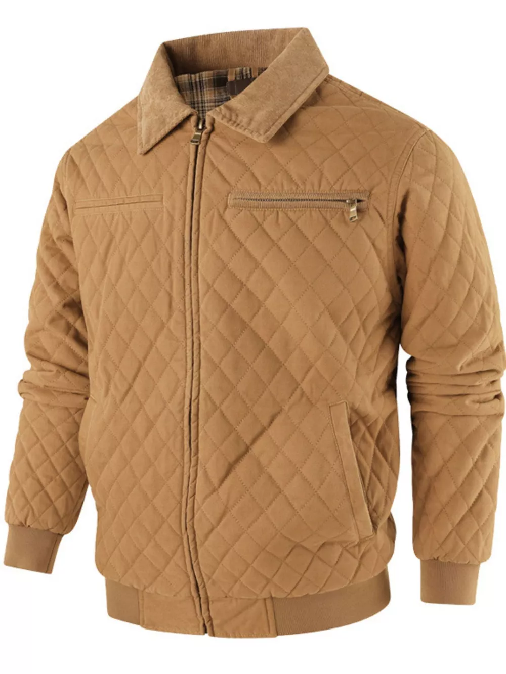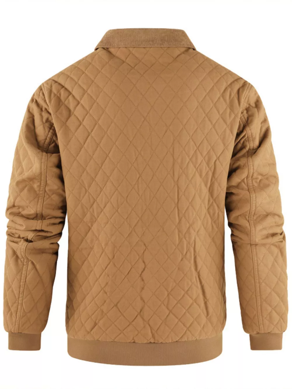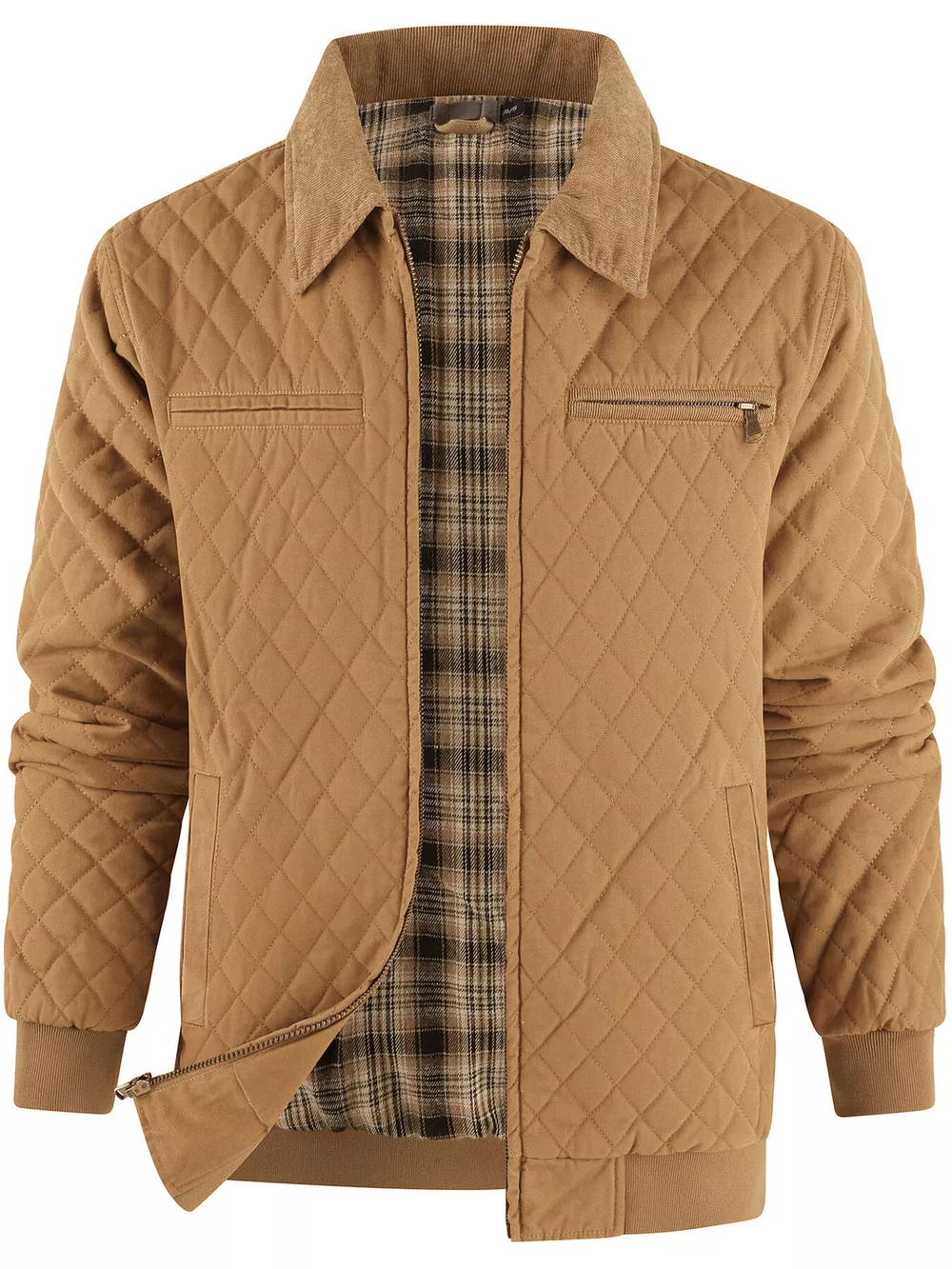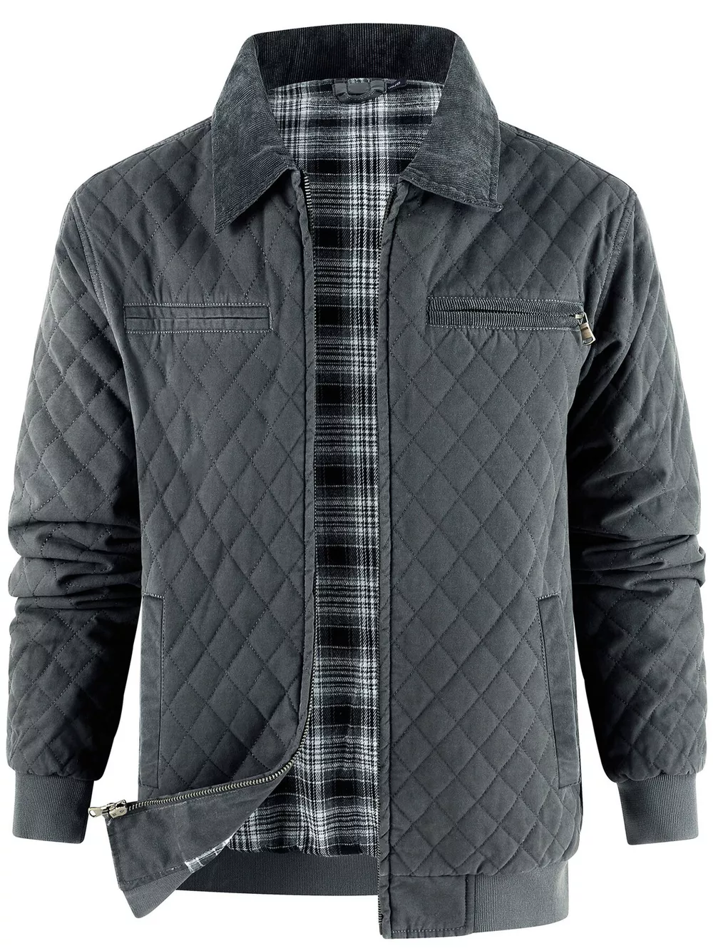 Men's Quilted Collared Neck Jacket with Plaid Lining