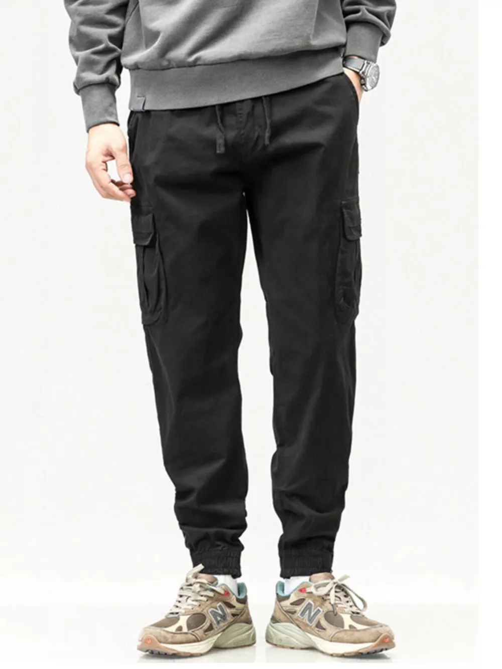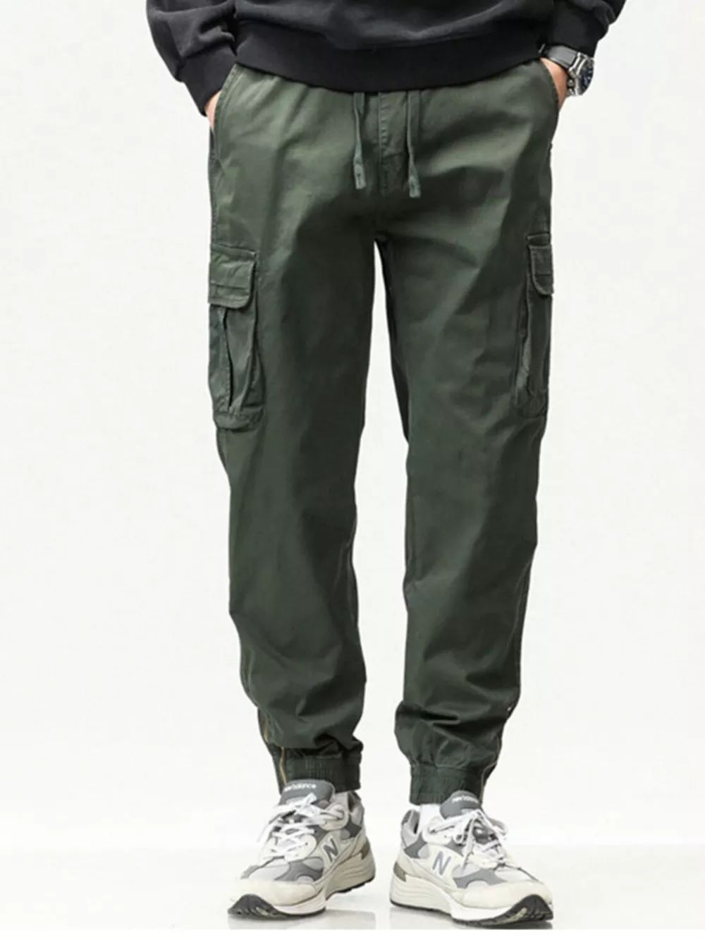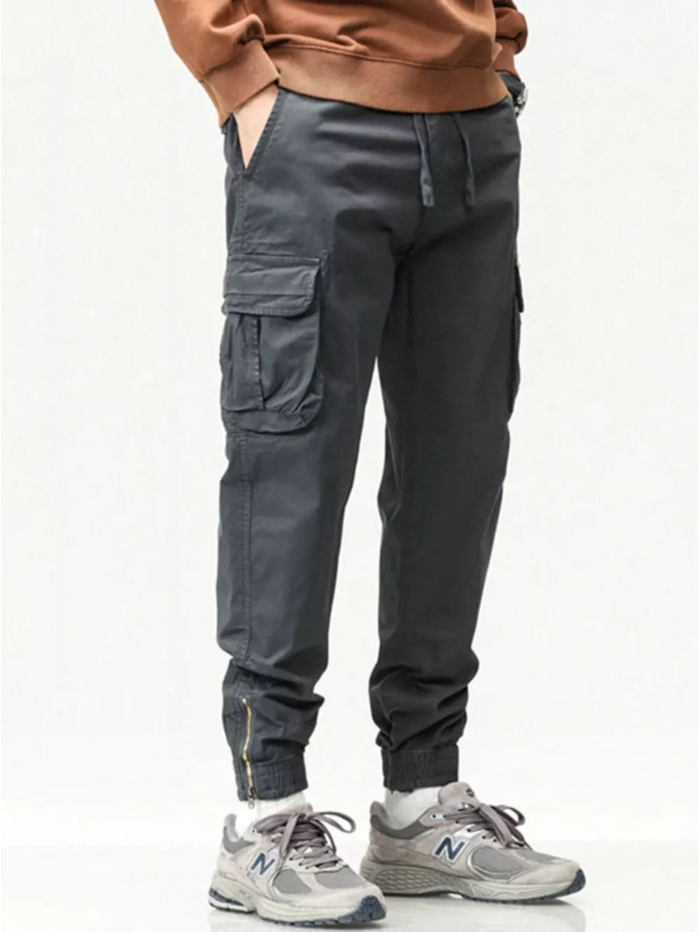 Men's Full Size Casual Cargo Pants with Drawstring Waist Plus Size