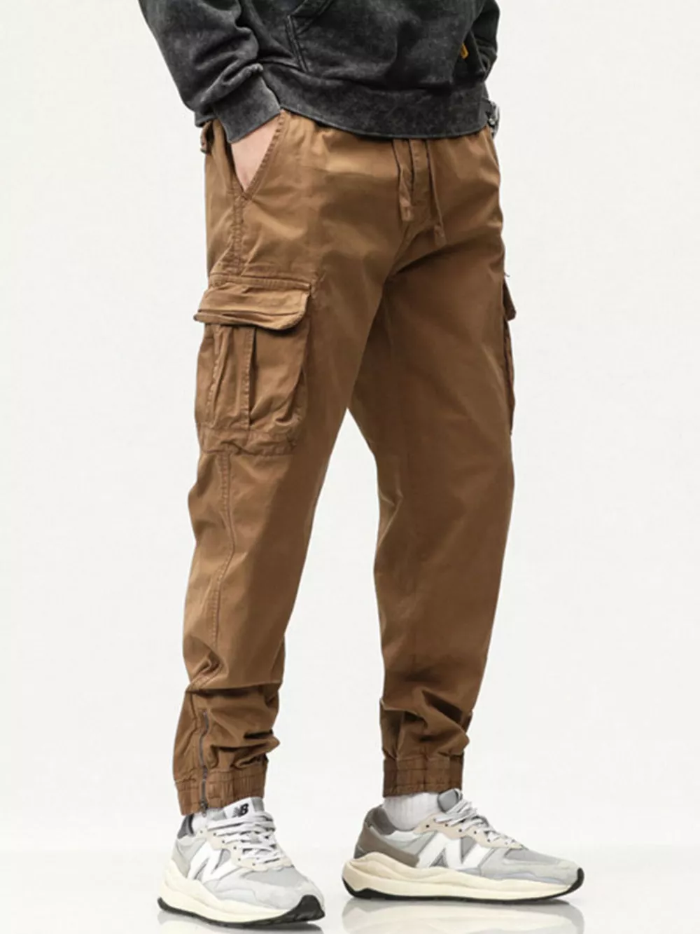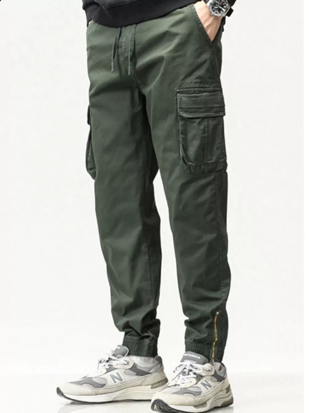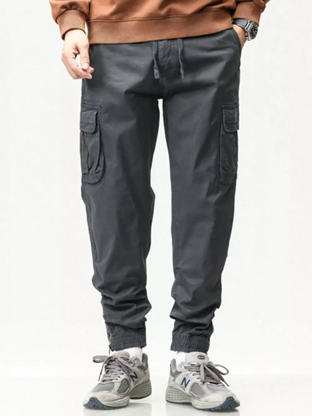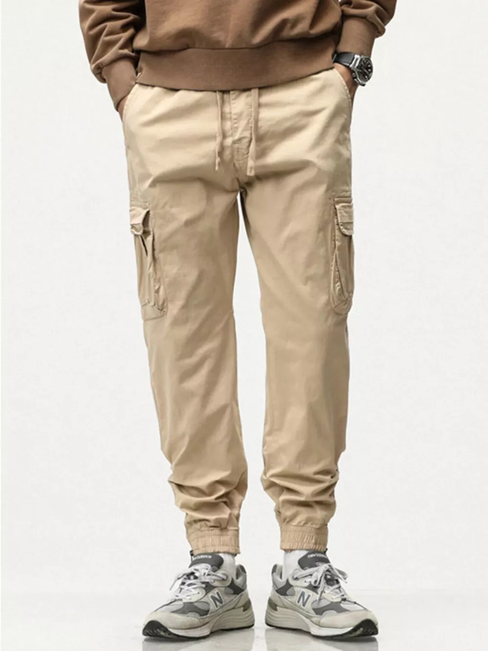 Men's Full Size Casual Cargo Pants with Drawstring Waist Plus Size