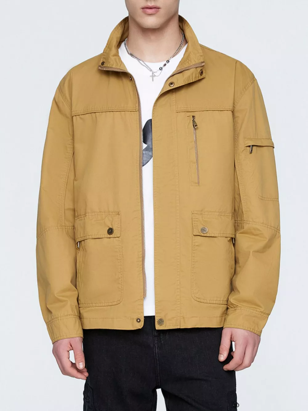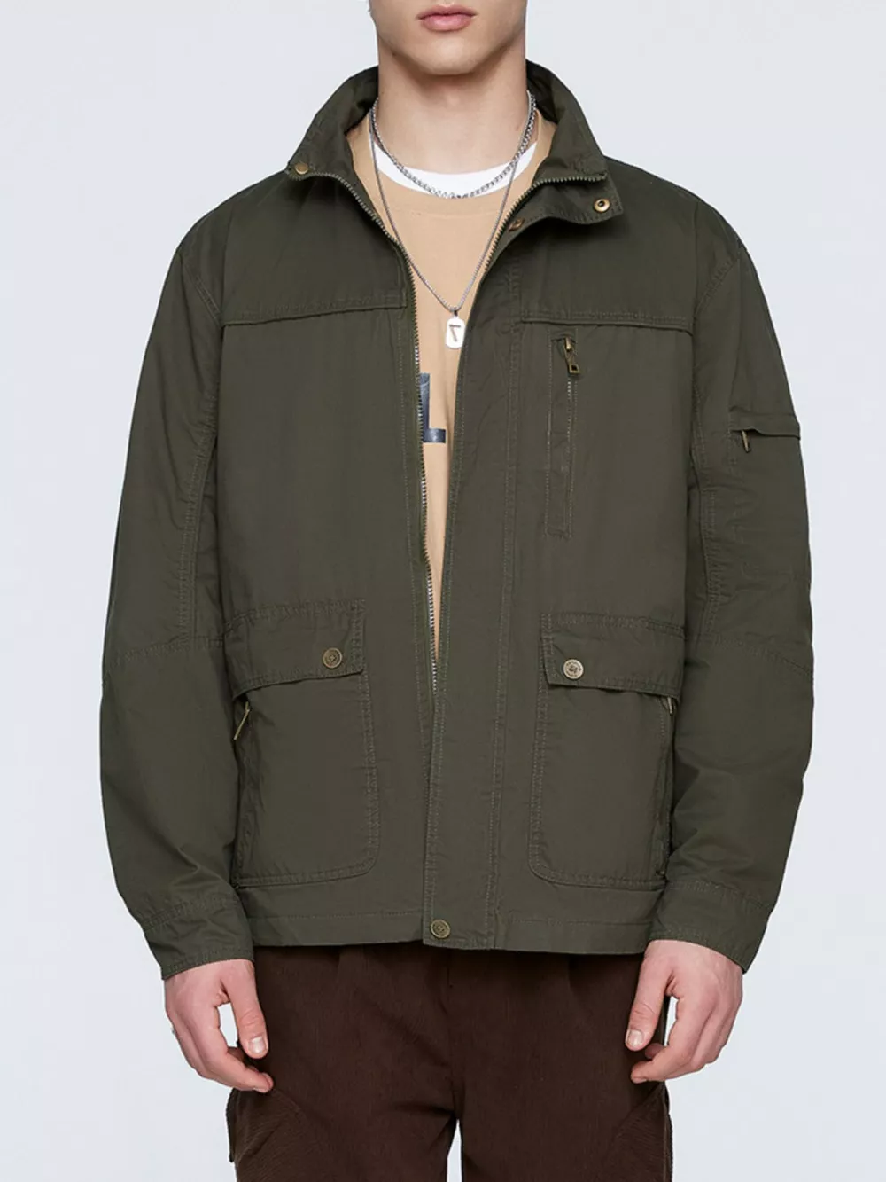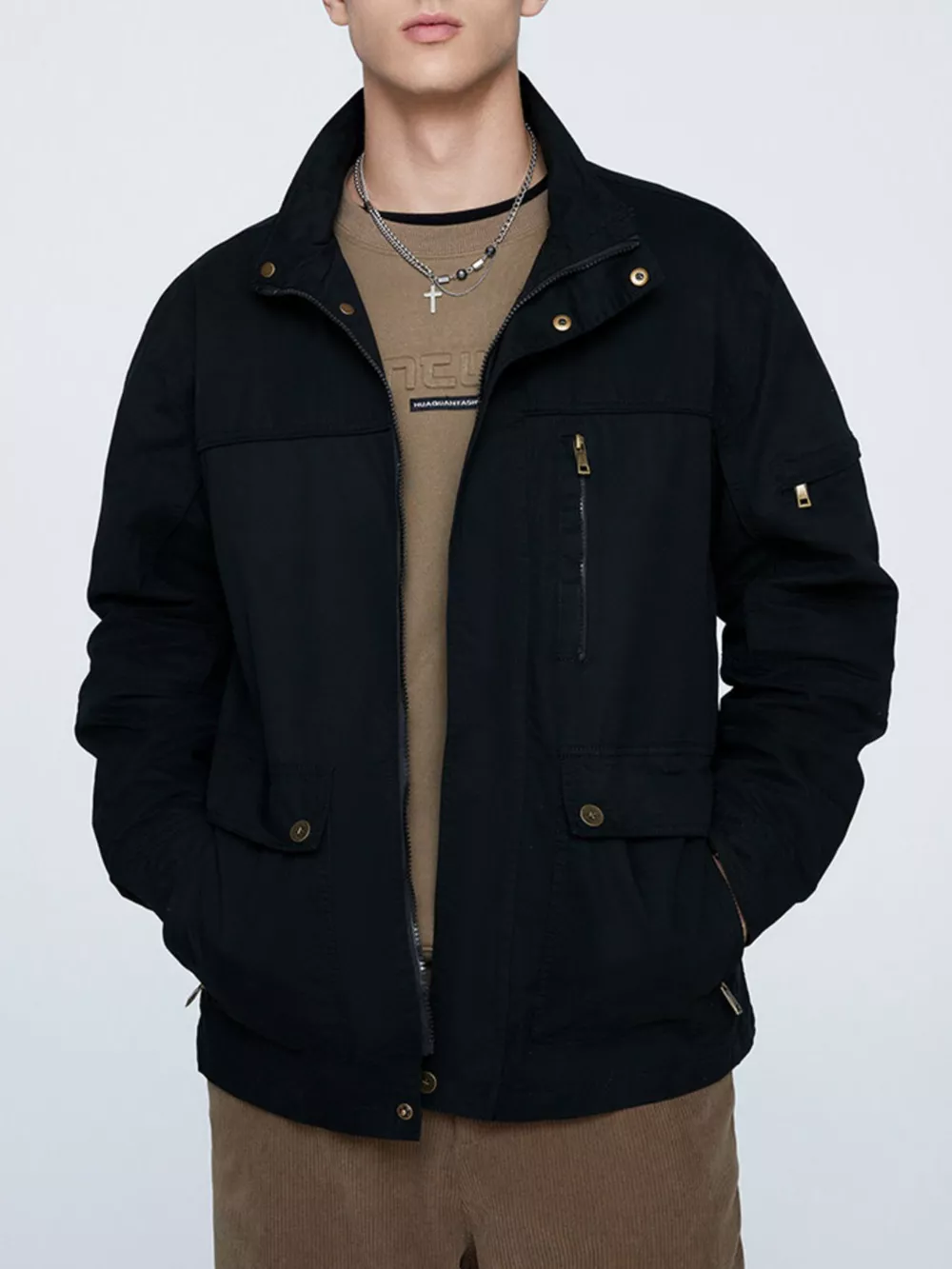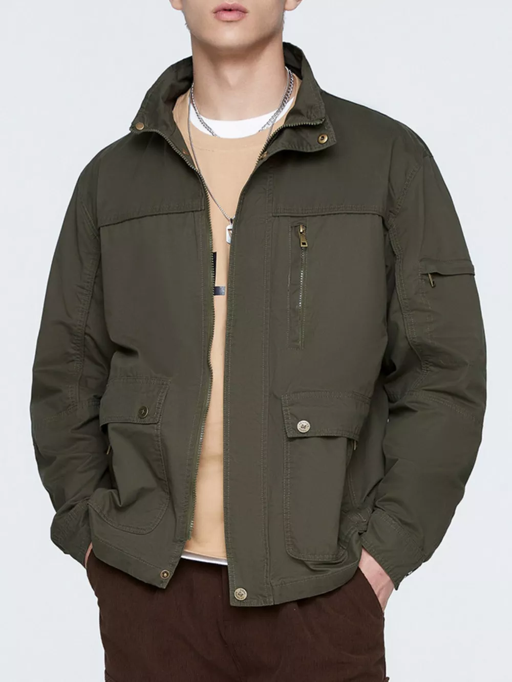 - Features:Buttoned,Pocketed,Zipper