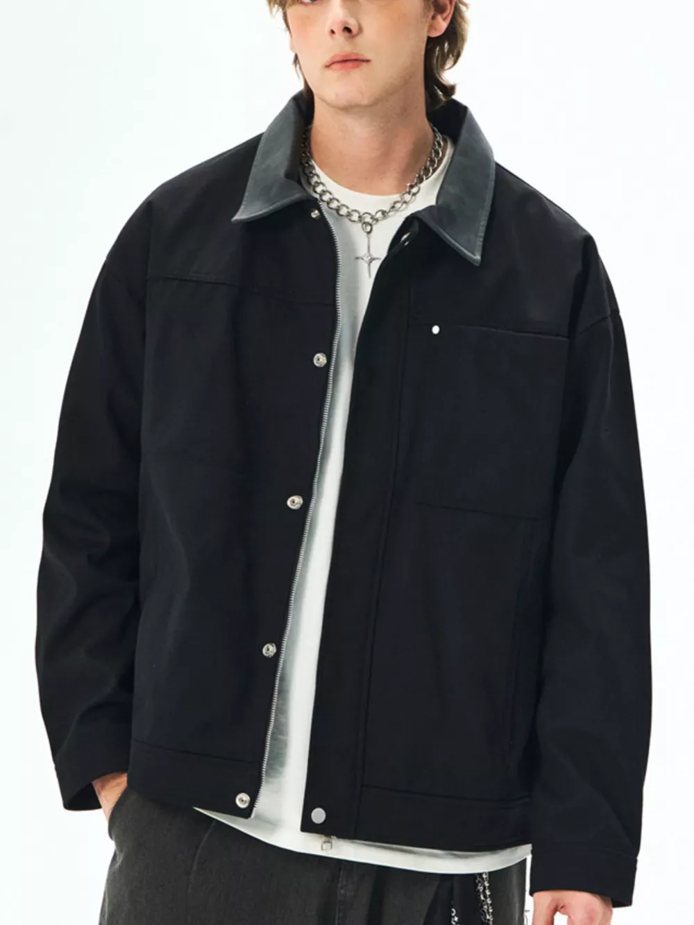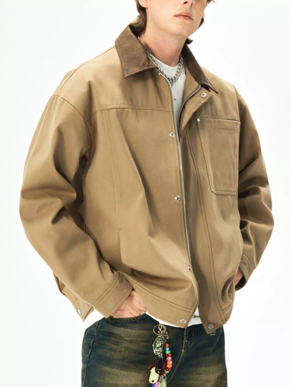 Men's Plus Size Snap Down Long Sleeve Jacket