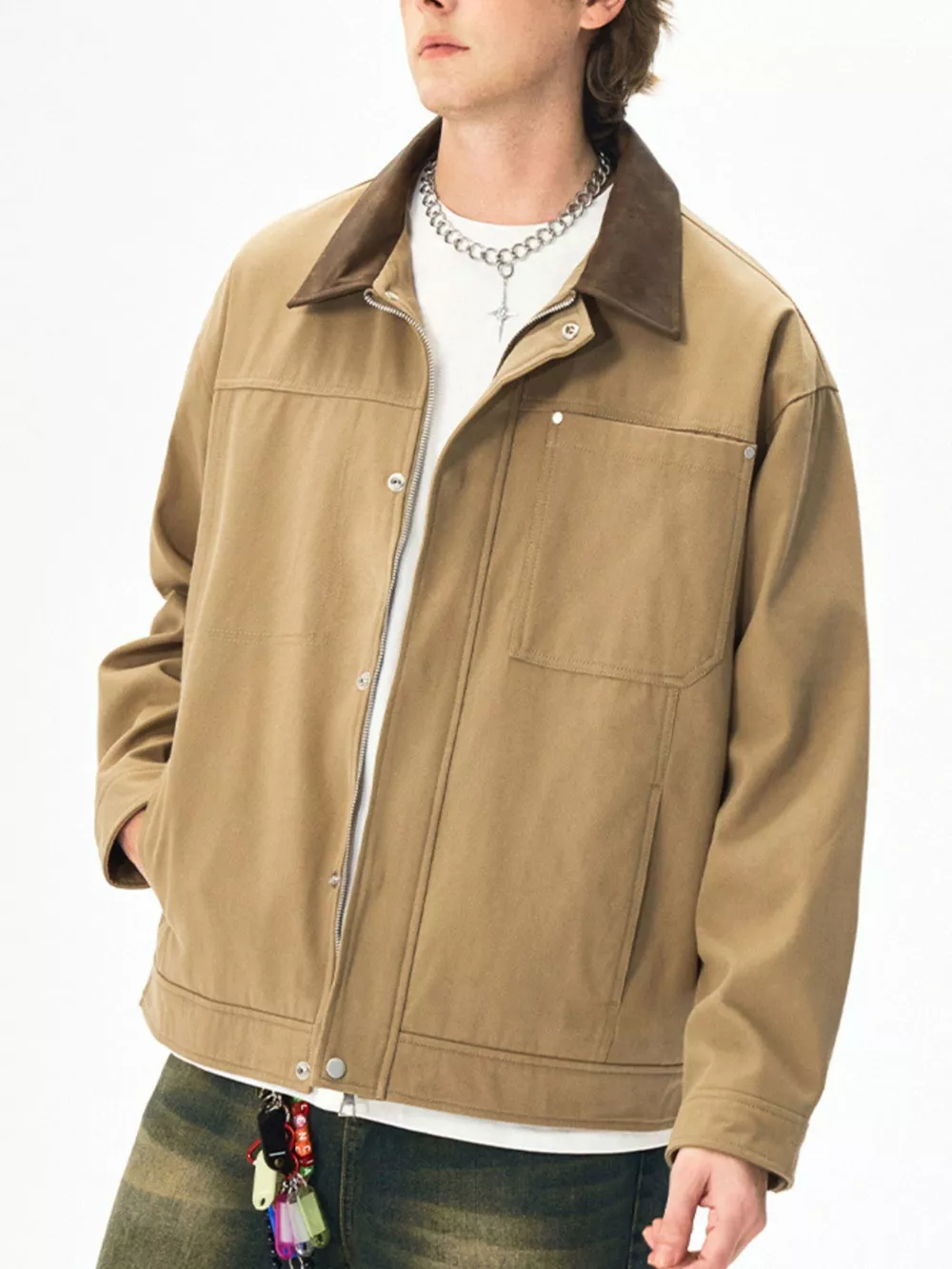 - Features:Basic style,Buttoned,Pocketed