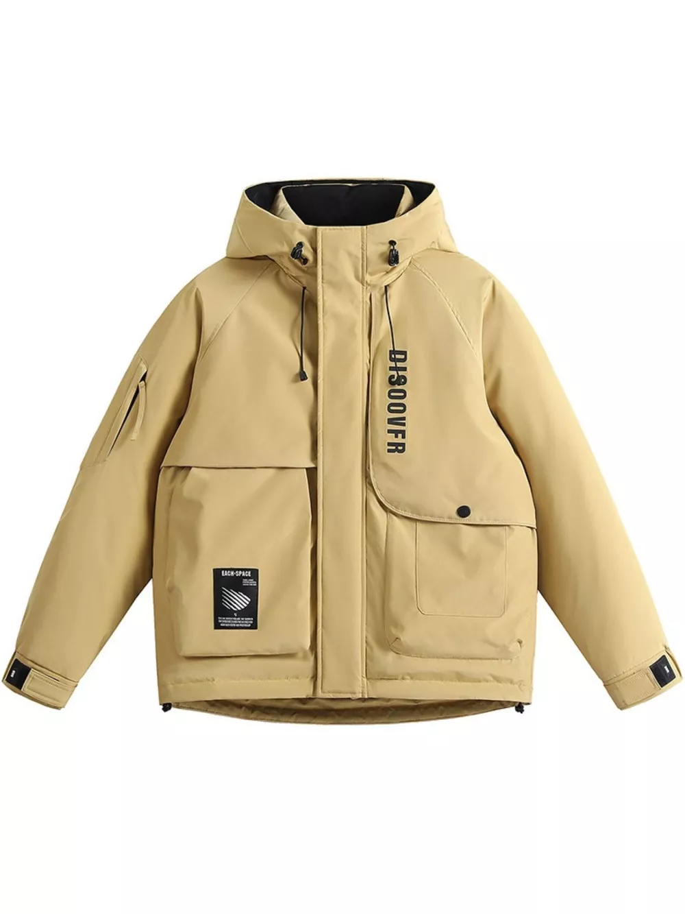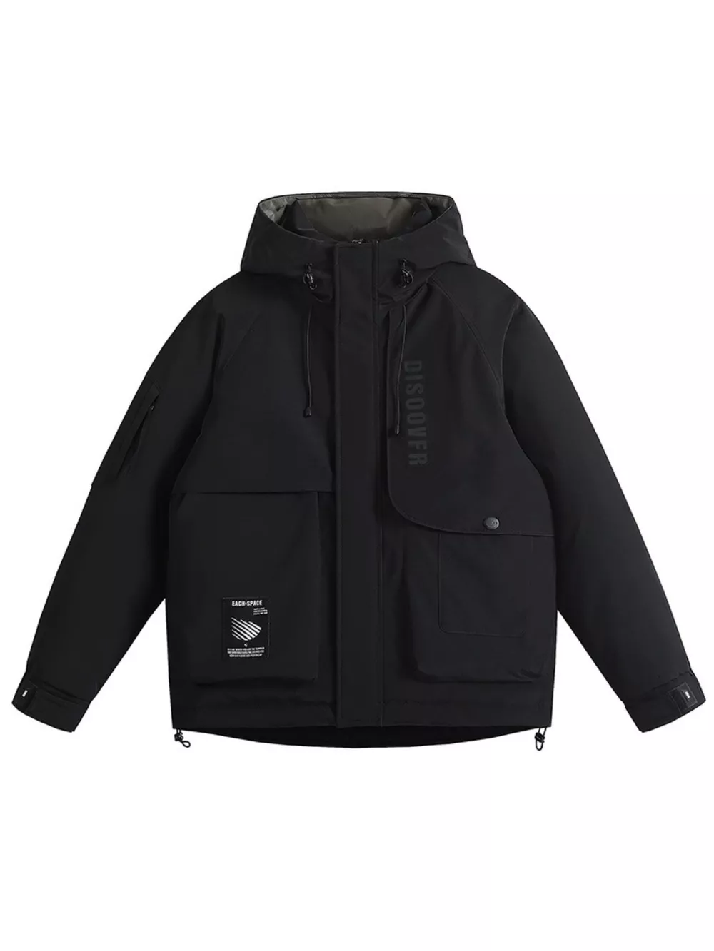 Men's Plus Size Adjustable Hooded Parka Jacket with Multiple Pockets
